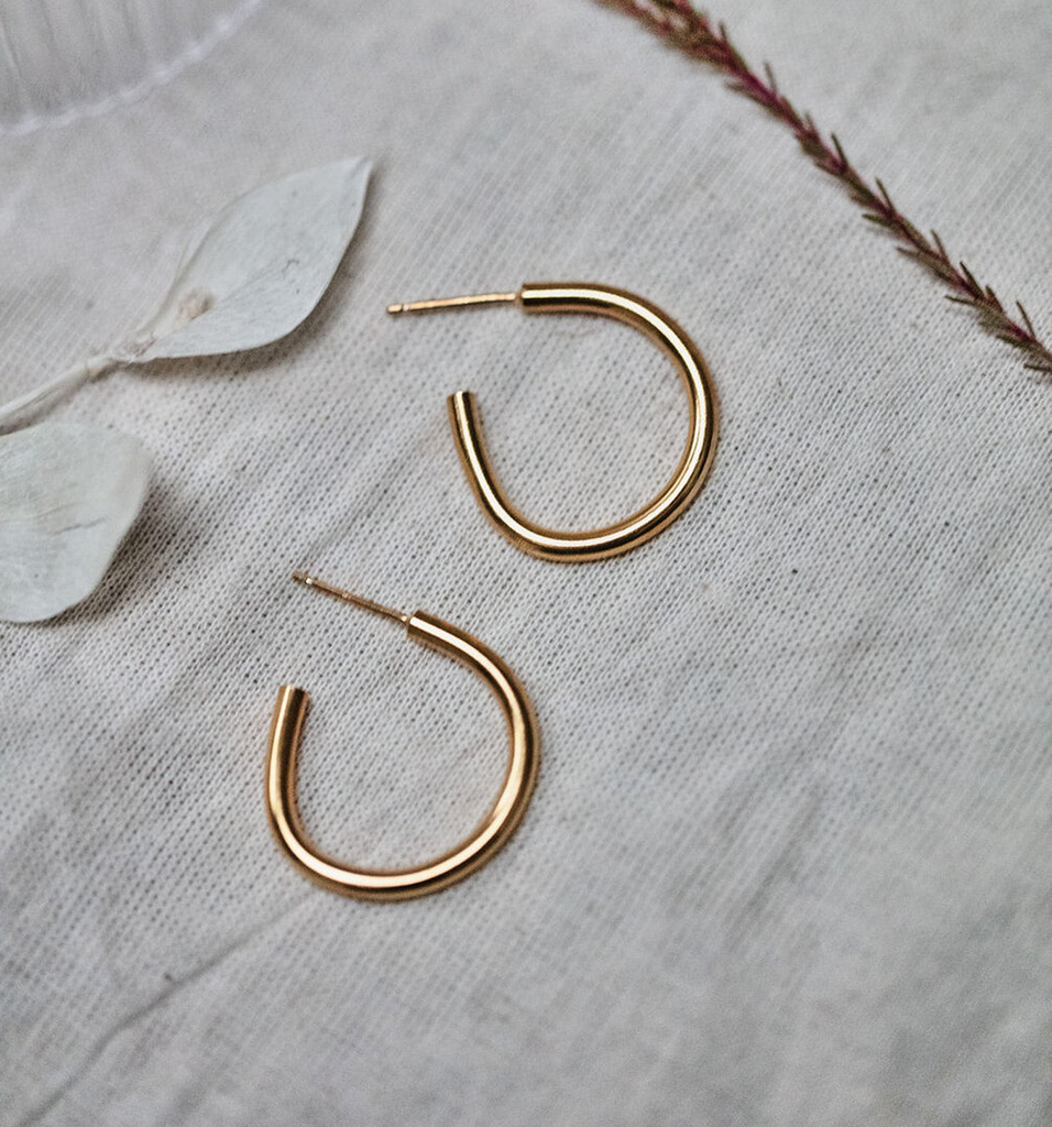 Simplicity at its best, these lightweight hoops are the perfect everyday accessory. Each pair may be slightly different as they are shaped by hand.