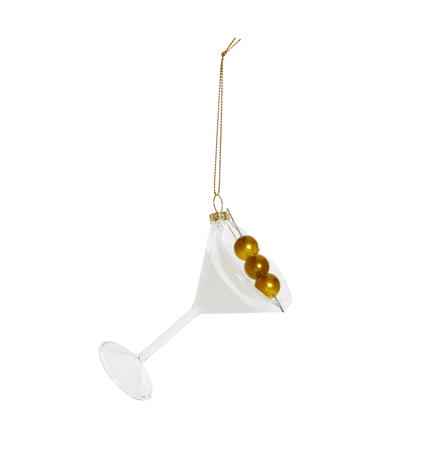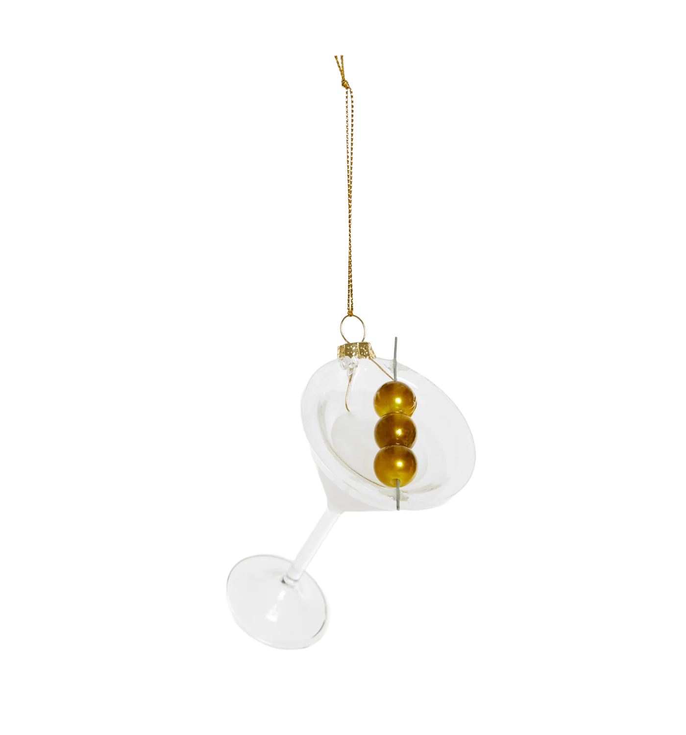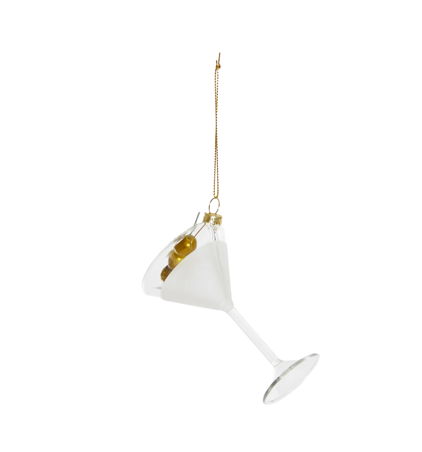 Add some extra fun to your festivities with this classy dry martini hanging ornament. A great little treat to add to your own collection, but also great for gifting!