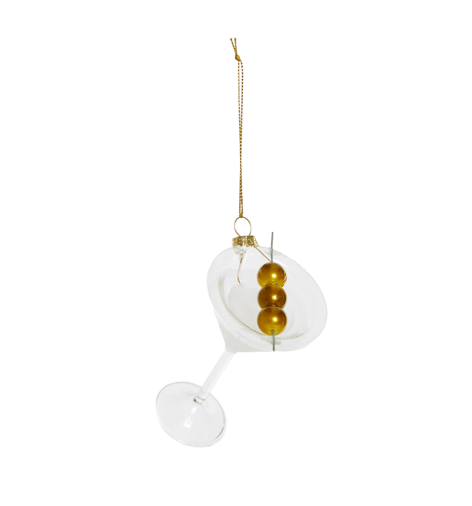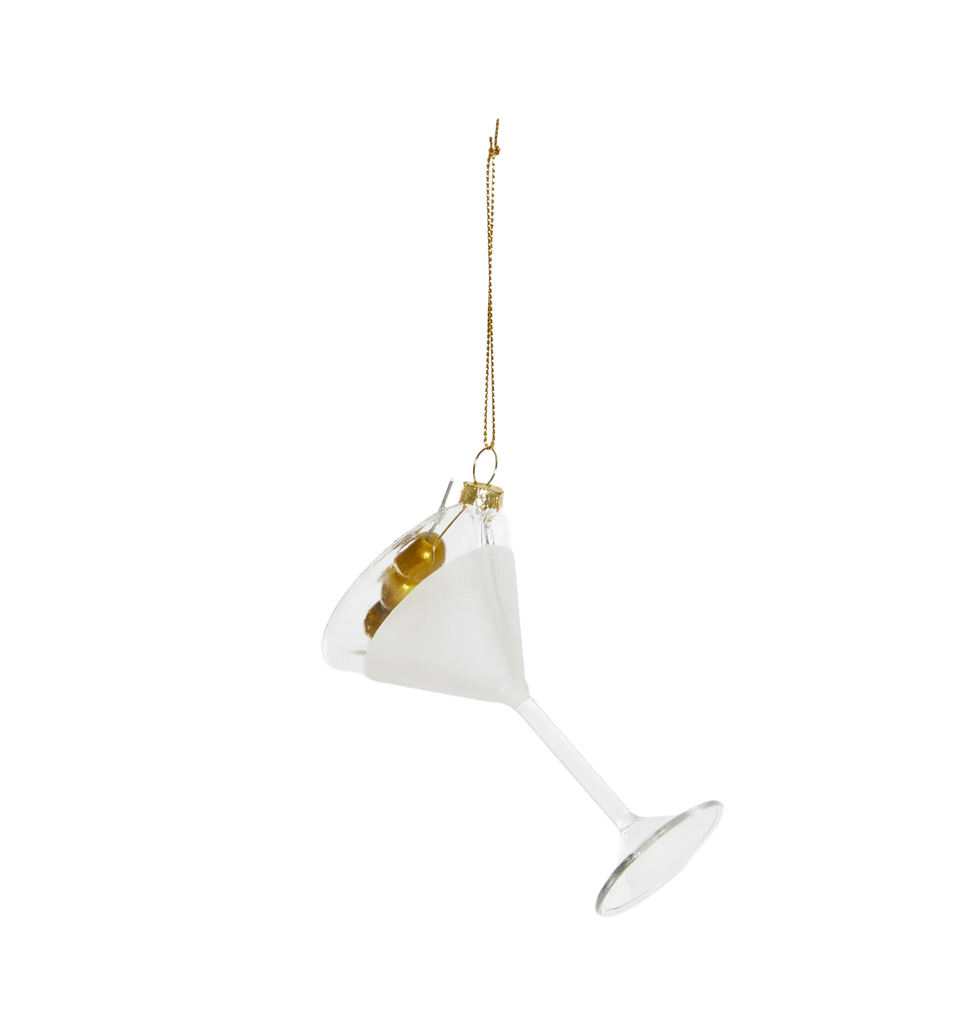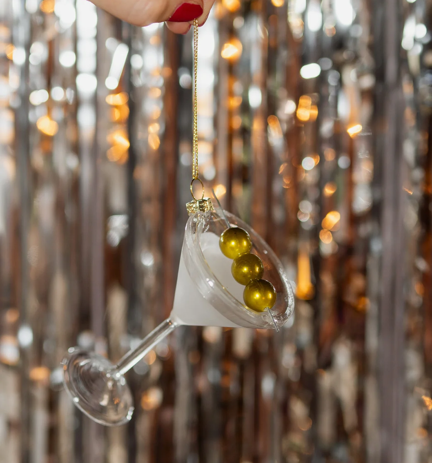 Add some extra fun to your festivities with this classy dry martini hanging ornament. A great little treat to add to your own collection, but also great for gifting!