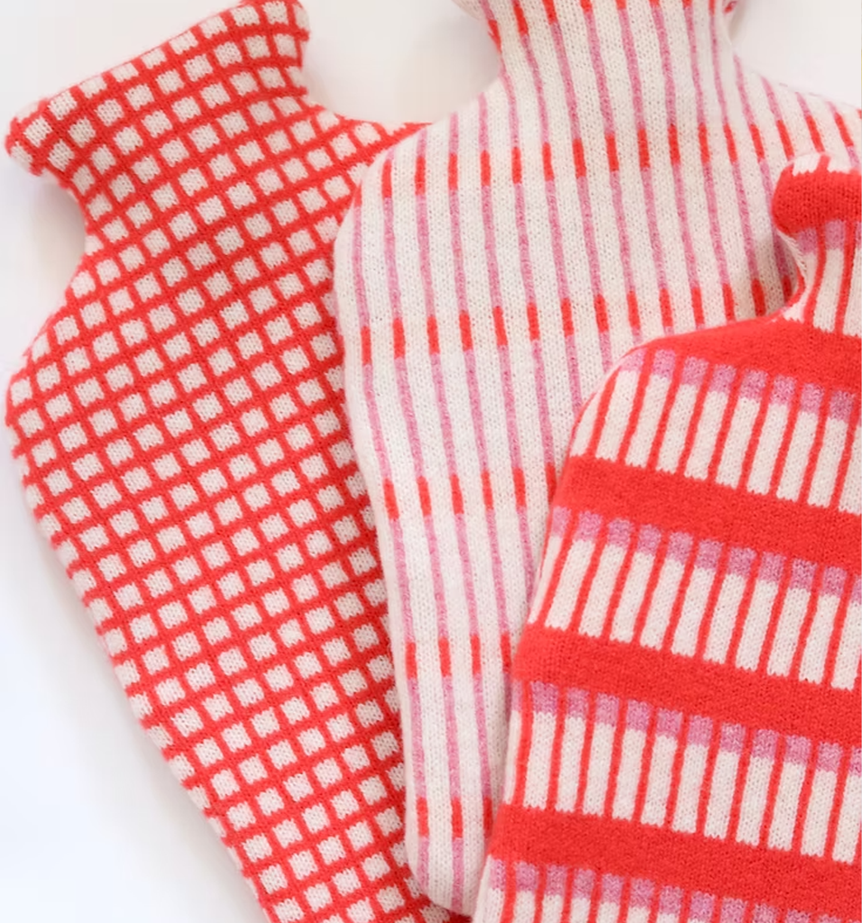 Handmade in Hampshire using luxuriously soft lambswool yarn, these wonderfully cosy, knitted hot water bottle covers will keep you warm for hours as well as being a stylish accessory for your living space.