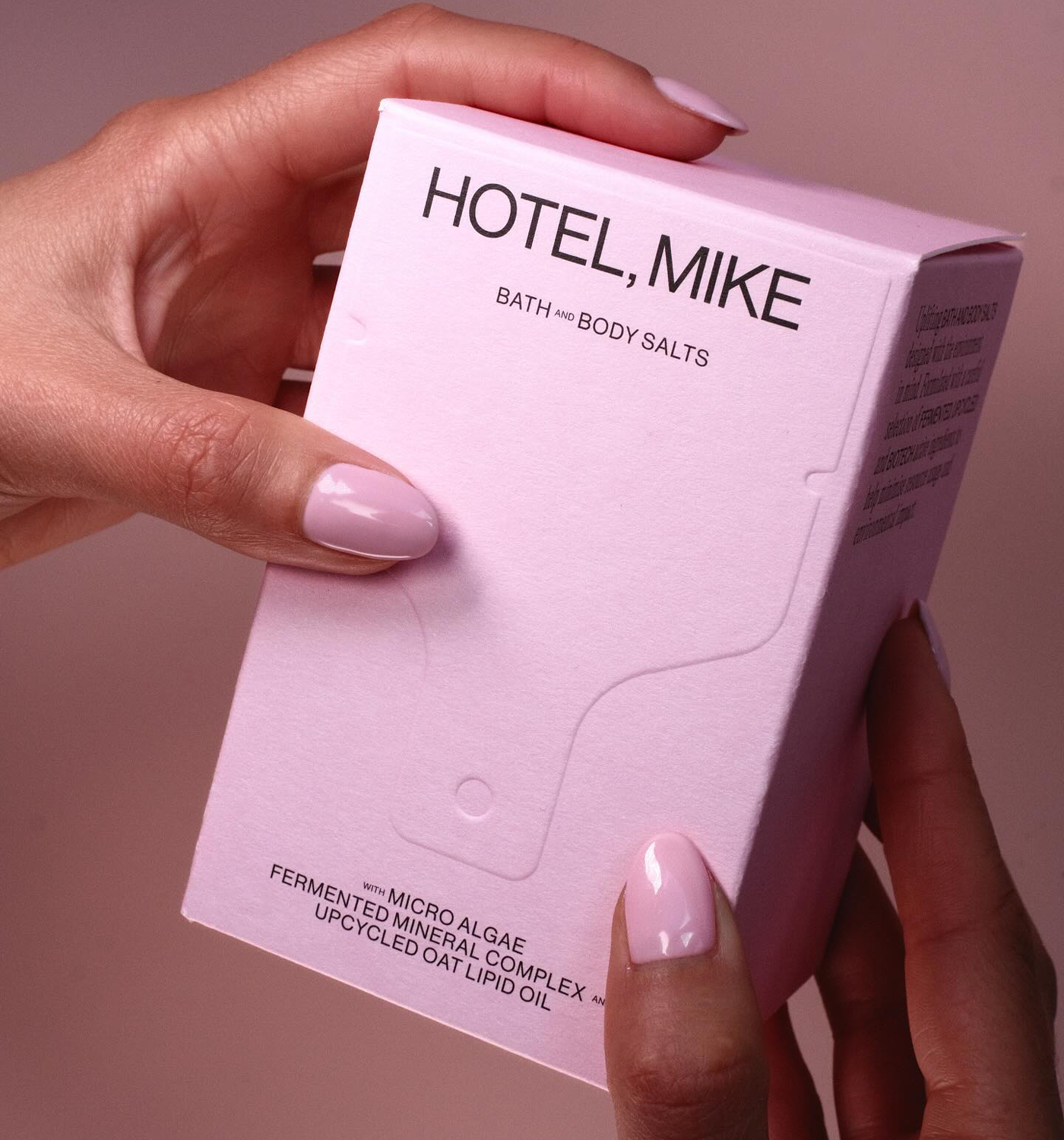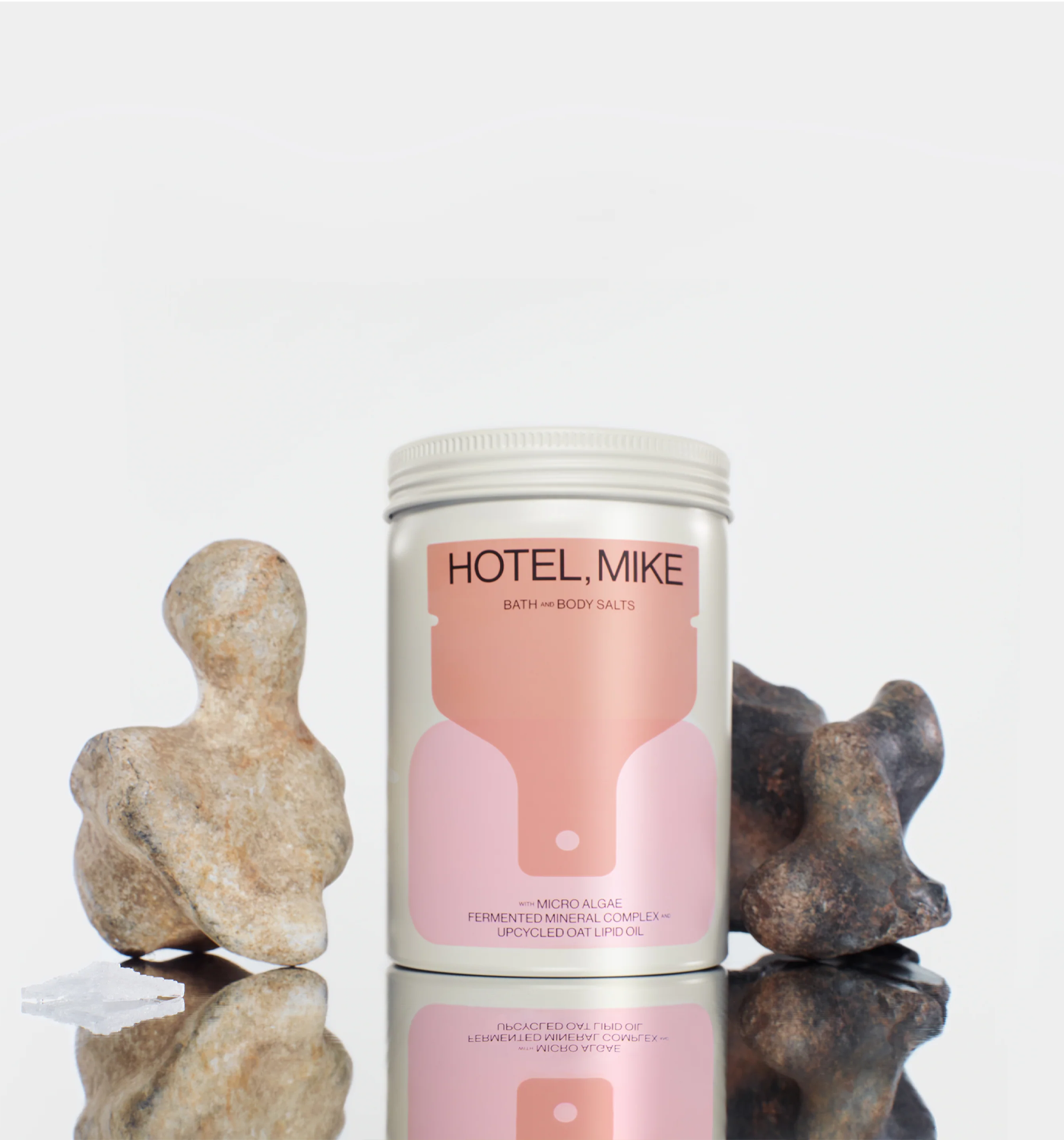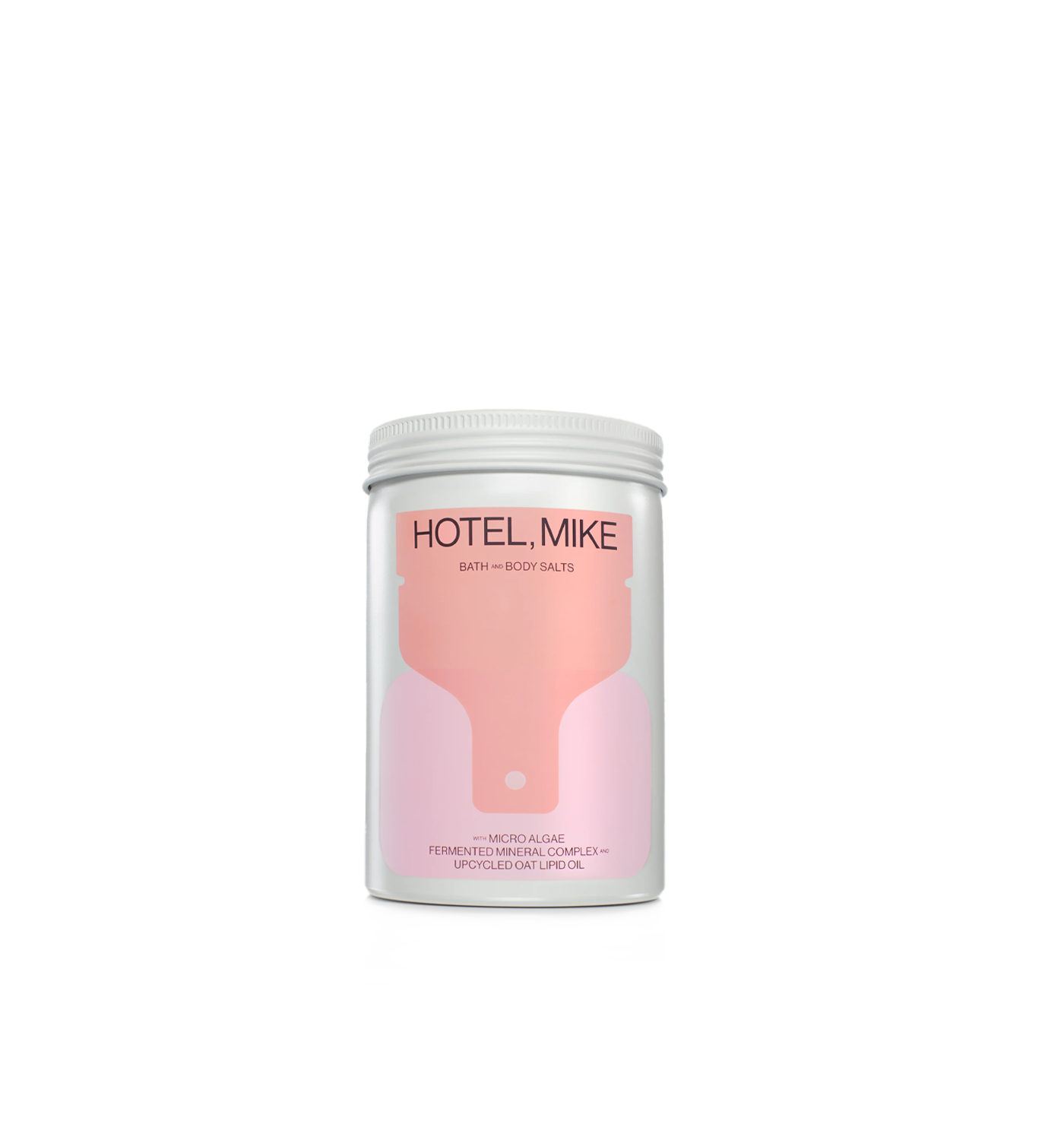 Add a handful of salts to a warm bath, or use with HOTEL, MIKE bath and body oil to form a body scrub. Mix one part salts with one part oil and use immediately. Apply to wet or dry skin, massage in circular motions, and then rinse.