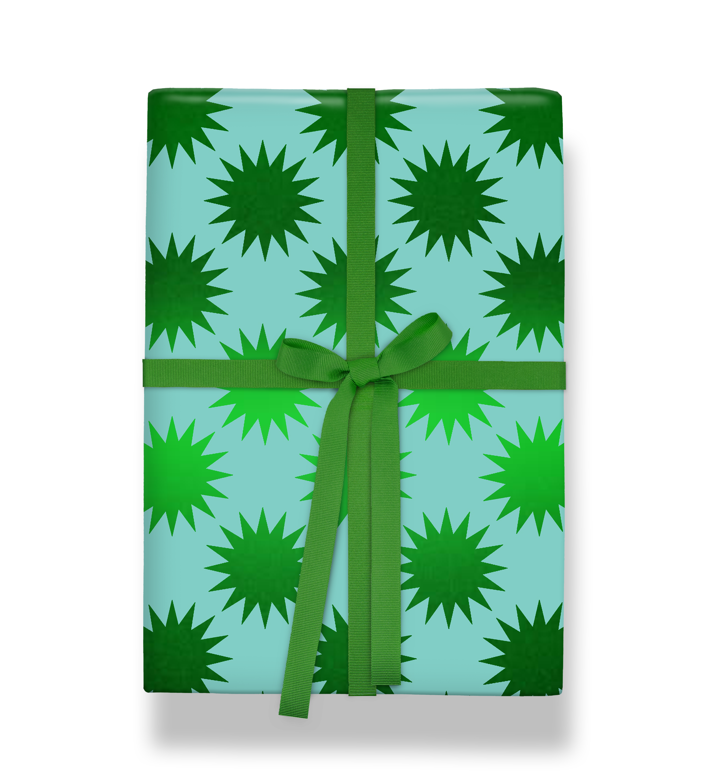 Frankincense Starburst Green Foil Roll Wrap, 3 Metres