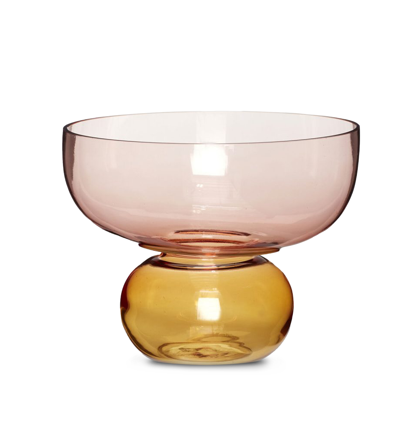 A contemporary glass vase in a two-tone design, creating a bright and fun look. The unique shaping of the vase makes it a modern and stylish piece of interior.