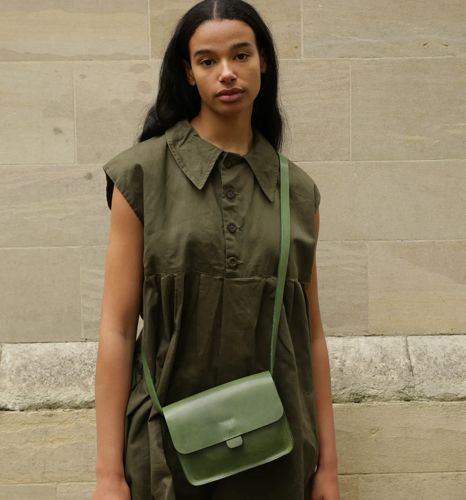 The Tab bag has a clean, refined look and is the perfect day bag with room for essentials like your purse, keys and phone. The bag is fashioned in smooth vegetable-tanned leather with a tab magnet closure and an adjustable leather strap.