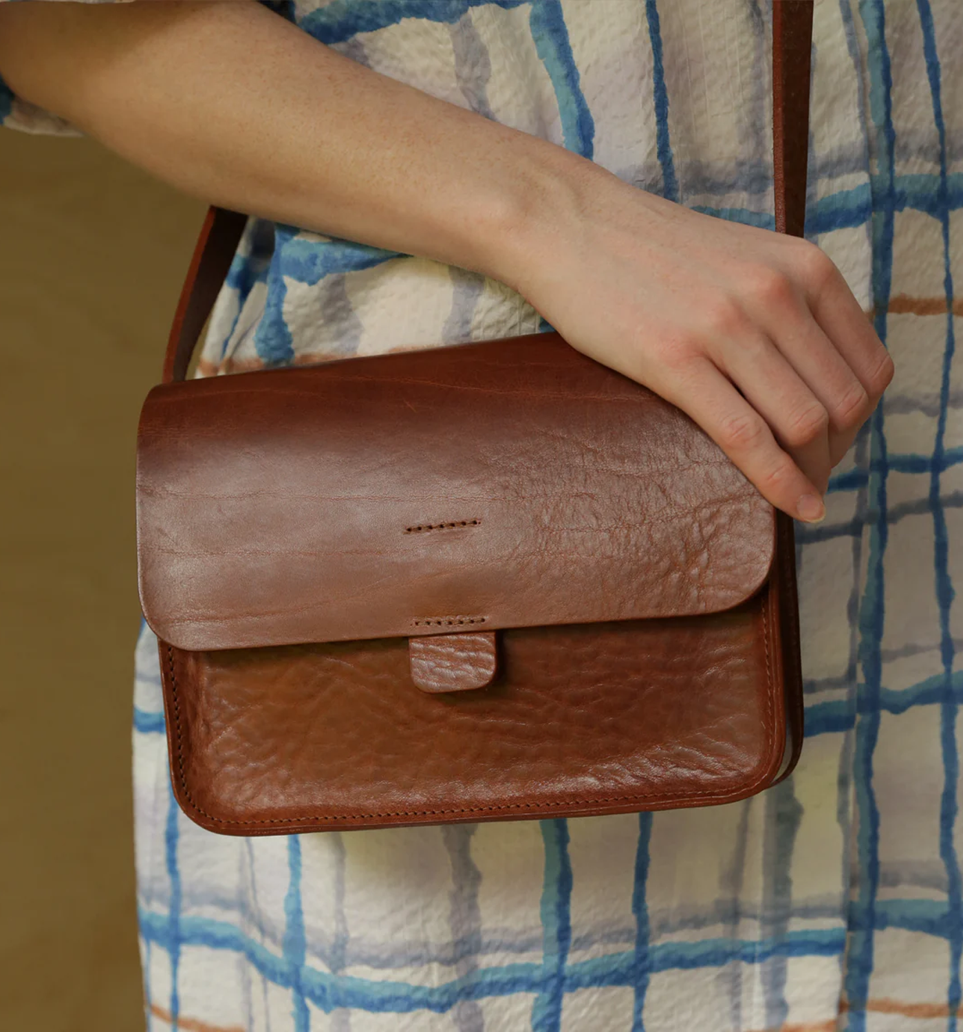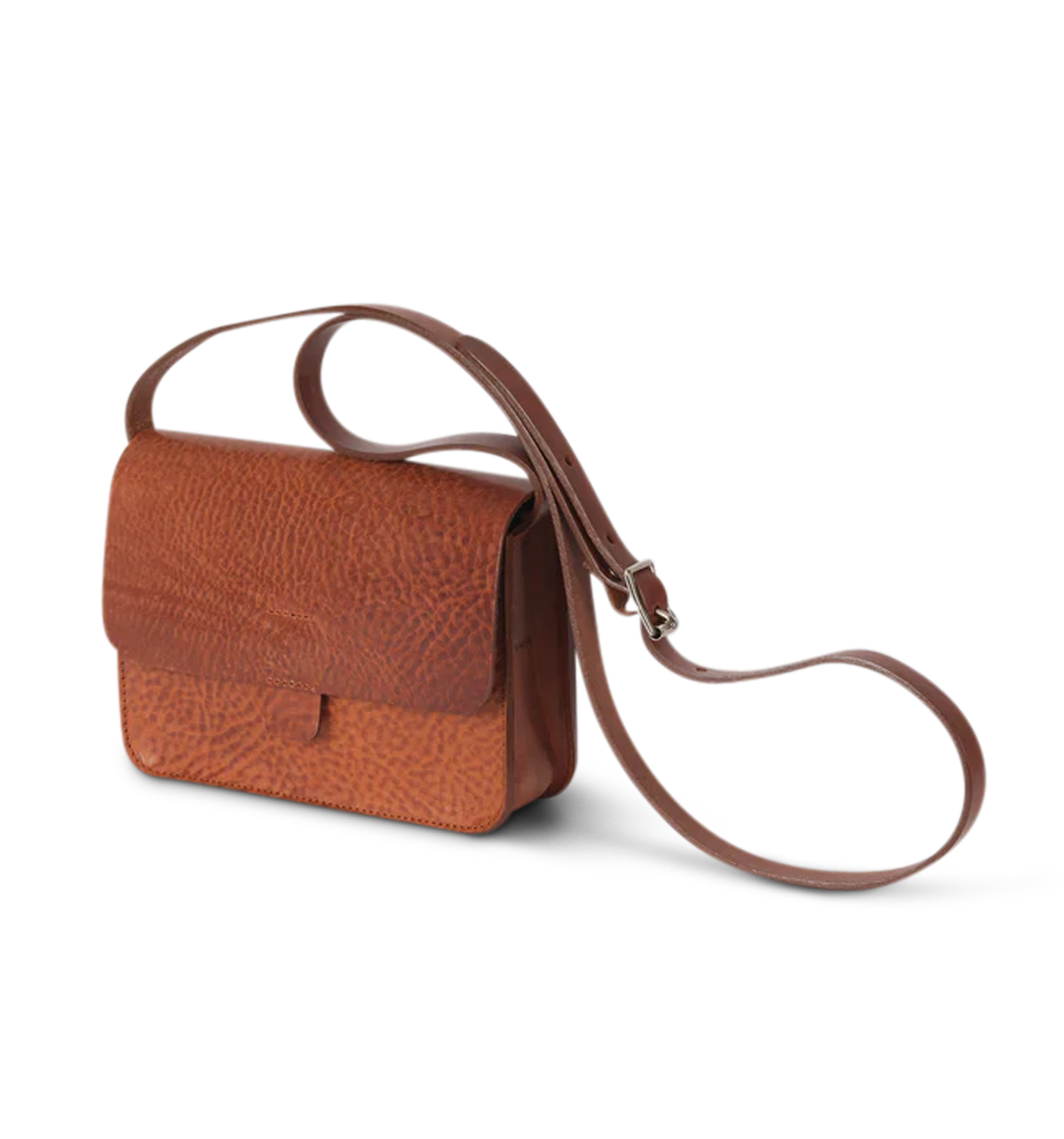 The Tab bag has a clean, refined look and is the perfect day bag with room for essentials like your purse, keys and phone. The bag is fashioned in vegetable-tanned leather with a tab magnet closure and an adjustable leather strap.