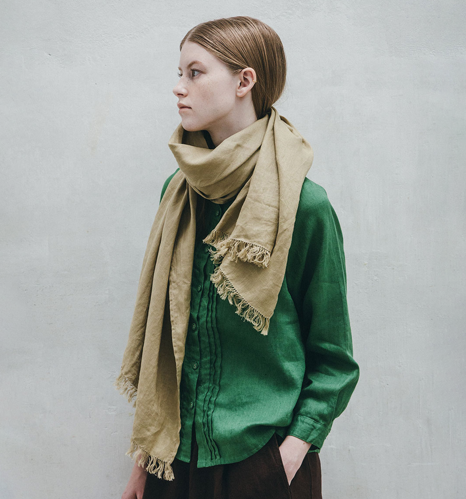 The Roserie scarf is a seasonless wardrobe staple, crafted from lightweight linen with selvedge fringe along its ends. The sheer linen is comfortable and has a light touch to the skin, becoming softer with each wash and wear.