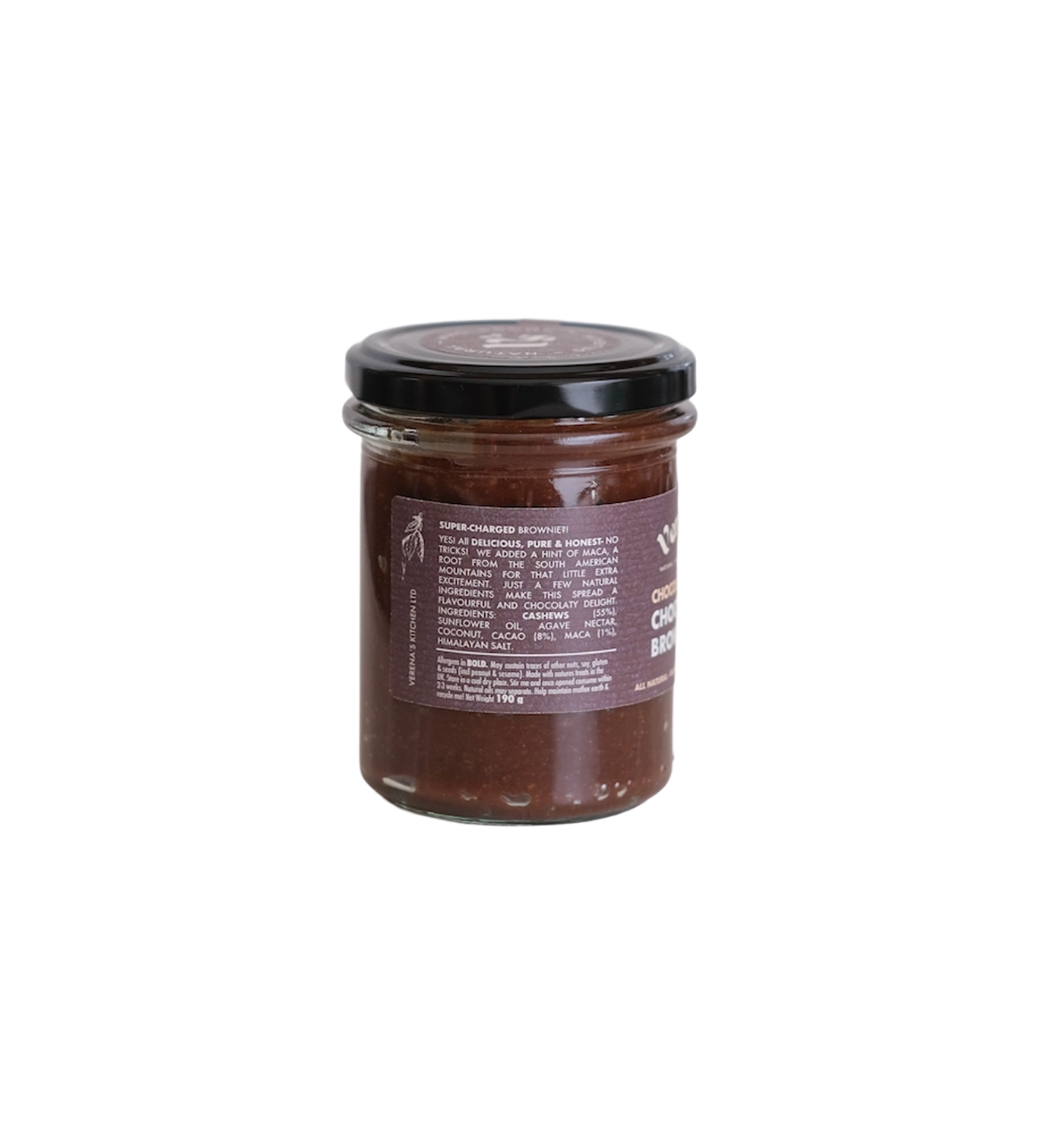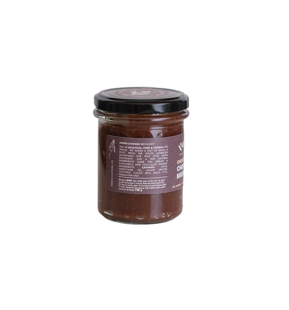 Chocolaty, creamy and indulgent. Like freshly made brownies - yet not too sweet and all natural. Pure cashews and cacao with a superfood maca make this spread a deliciously nourishing delight. Maca is a nutritious root originating from the mountains of South America and has a naturally nutty taste.