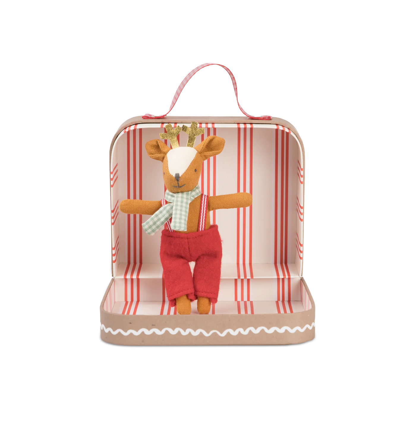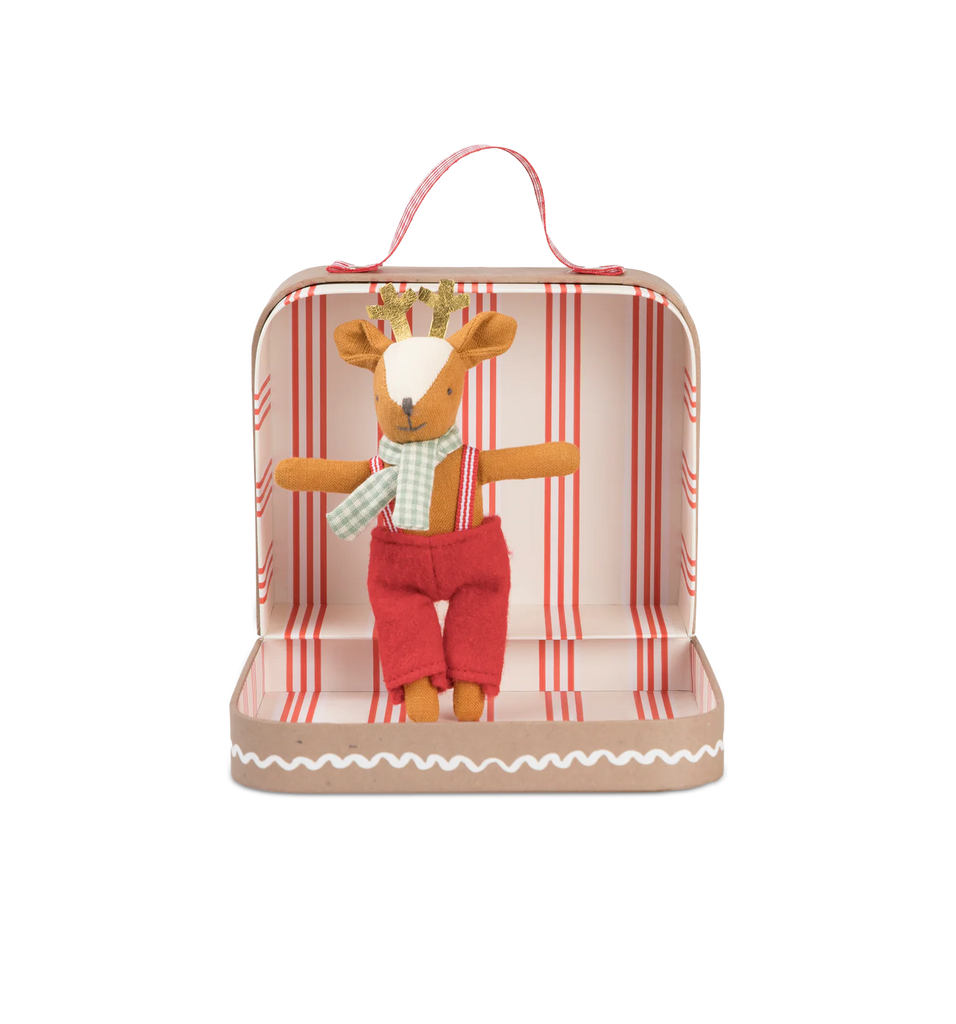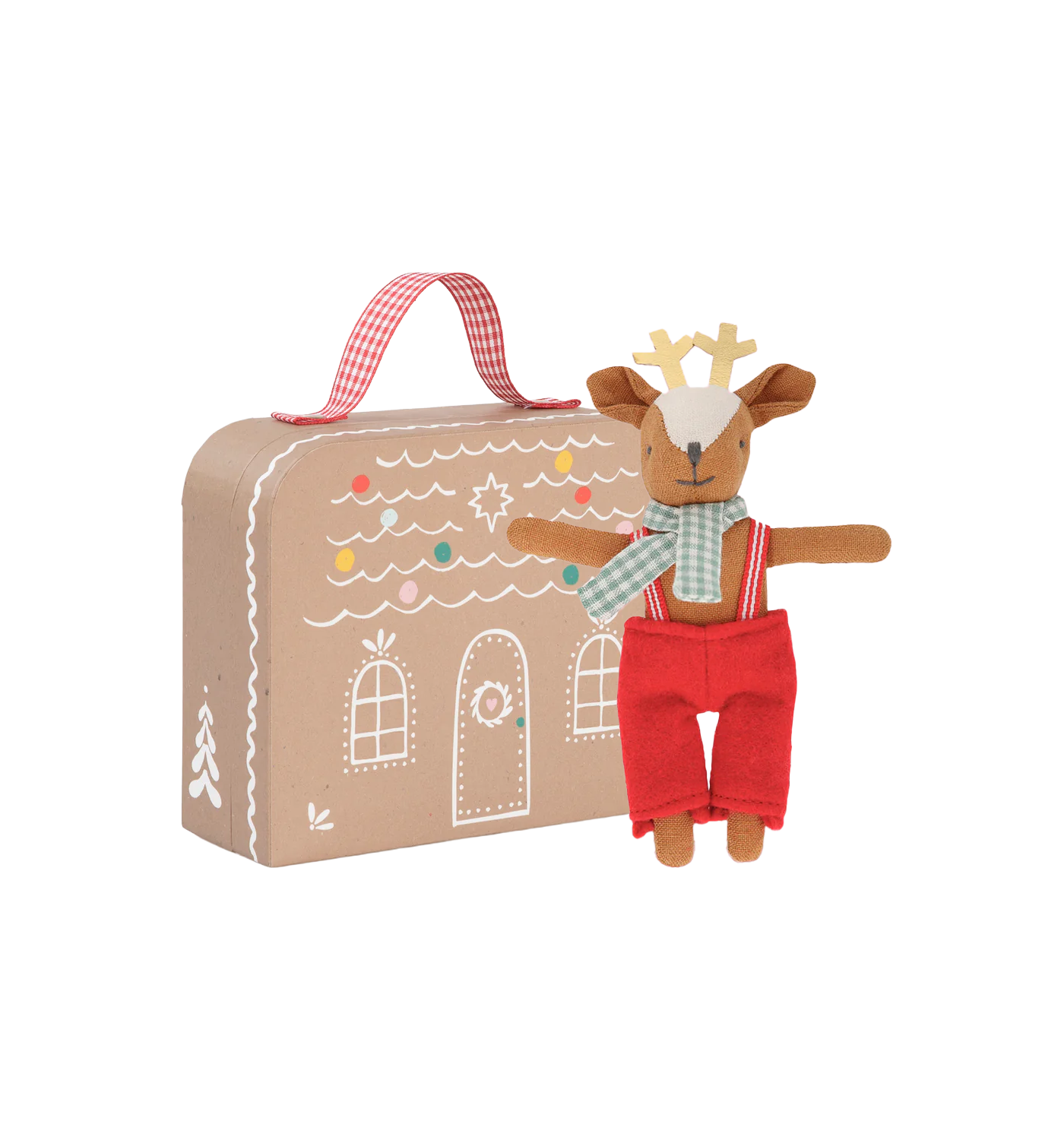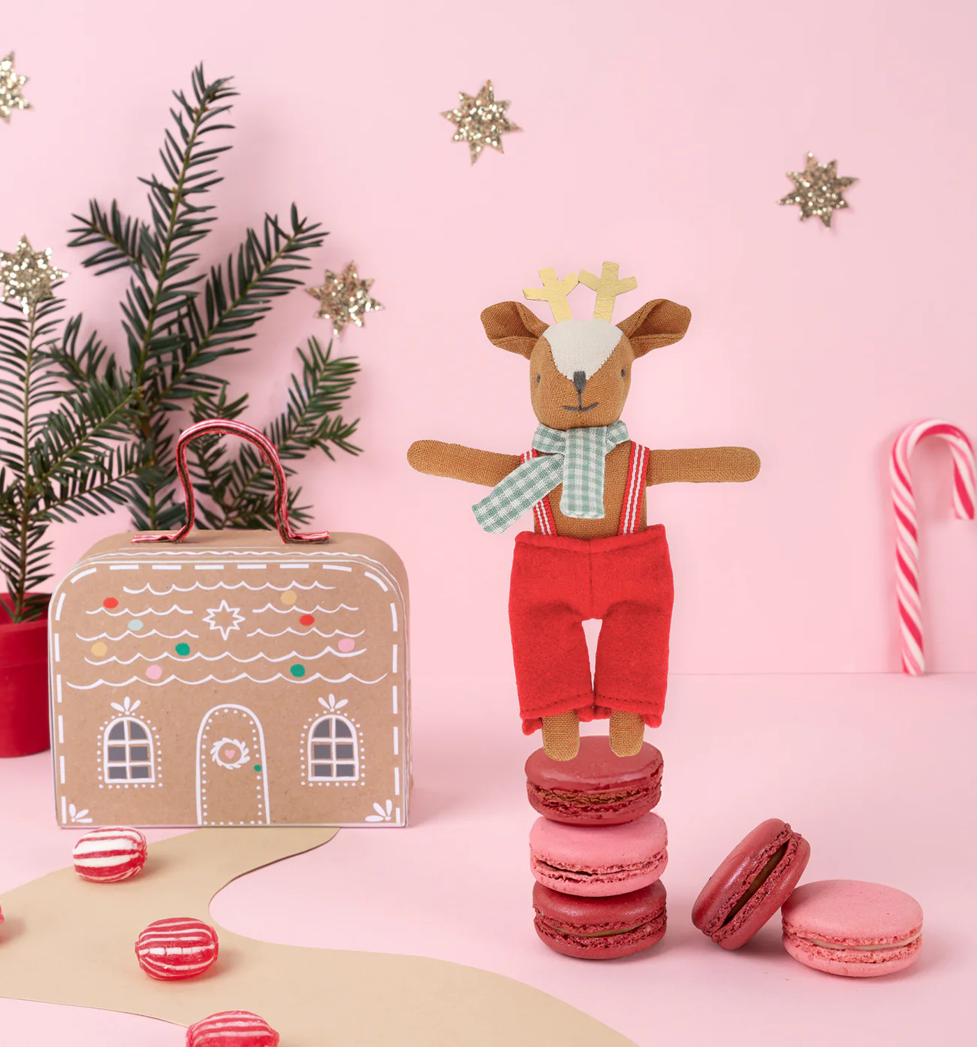 A new festive friend, perfectly housed in a darling gingerbread suitcase. A great companion for all of those Christmassy adventures!
