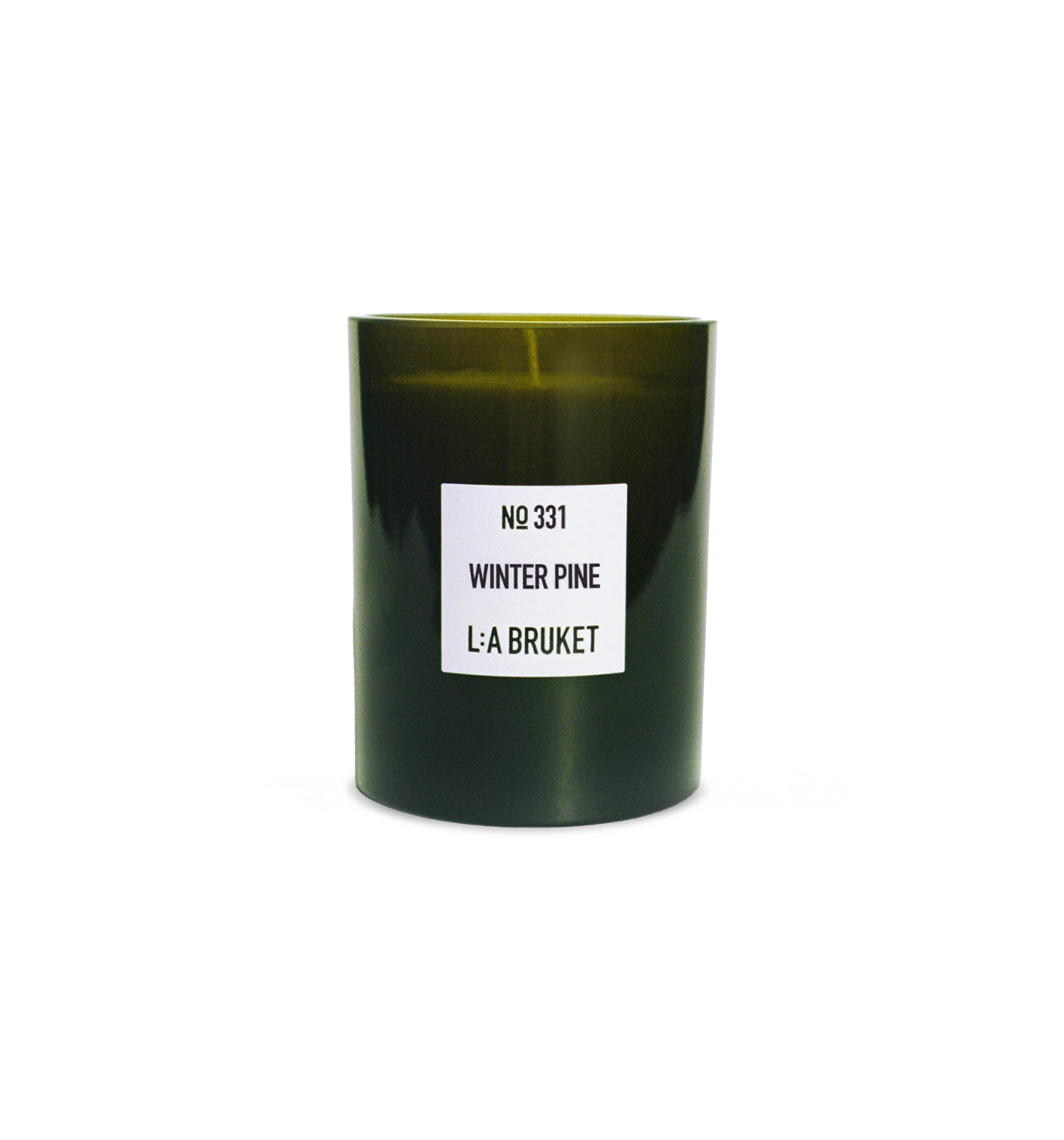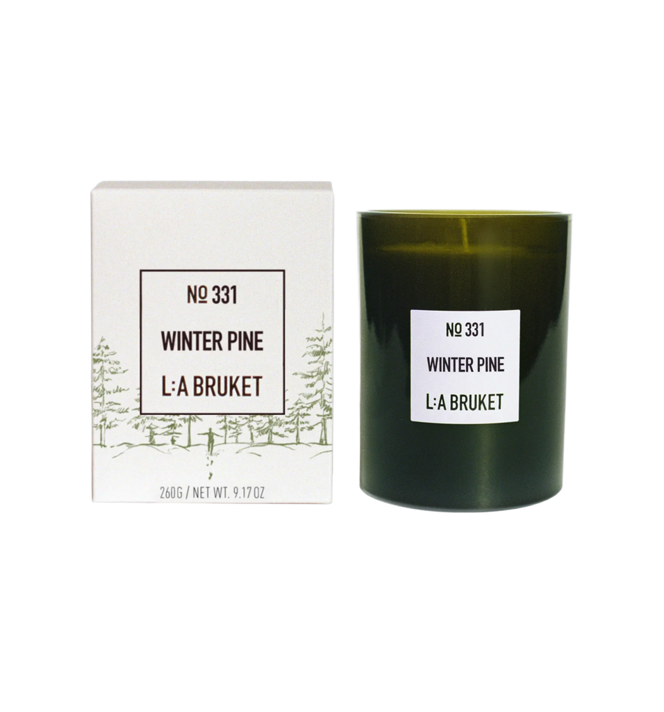 Scented candle crafted using plant-based wax with a fresh burst of pine needle and rosemary evoking the crisp air of untouched wilderness.