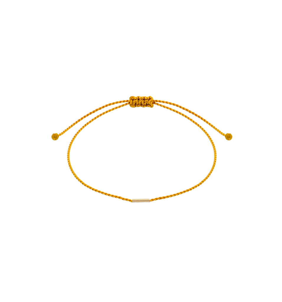 Designed and handmade in Los Angeles, the Bamboo bracelet is a darling single cord bracelet with a long 14k yellow gold bead. Great for stacking with other bracelets, or wear alone for a more minimalist look.