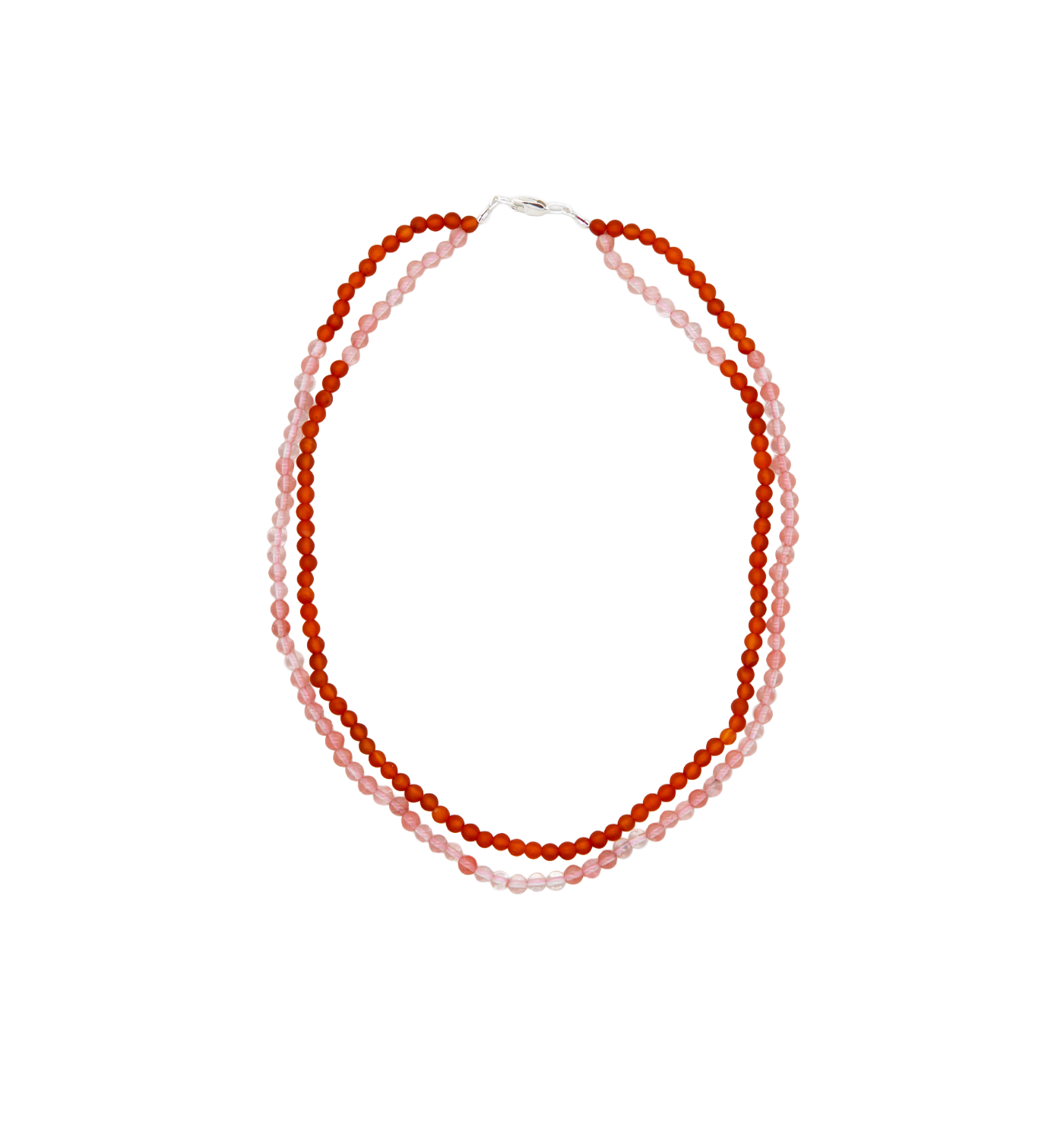 Cherry Quartz & Frosted Carnelian Beaded Necklace I