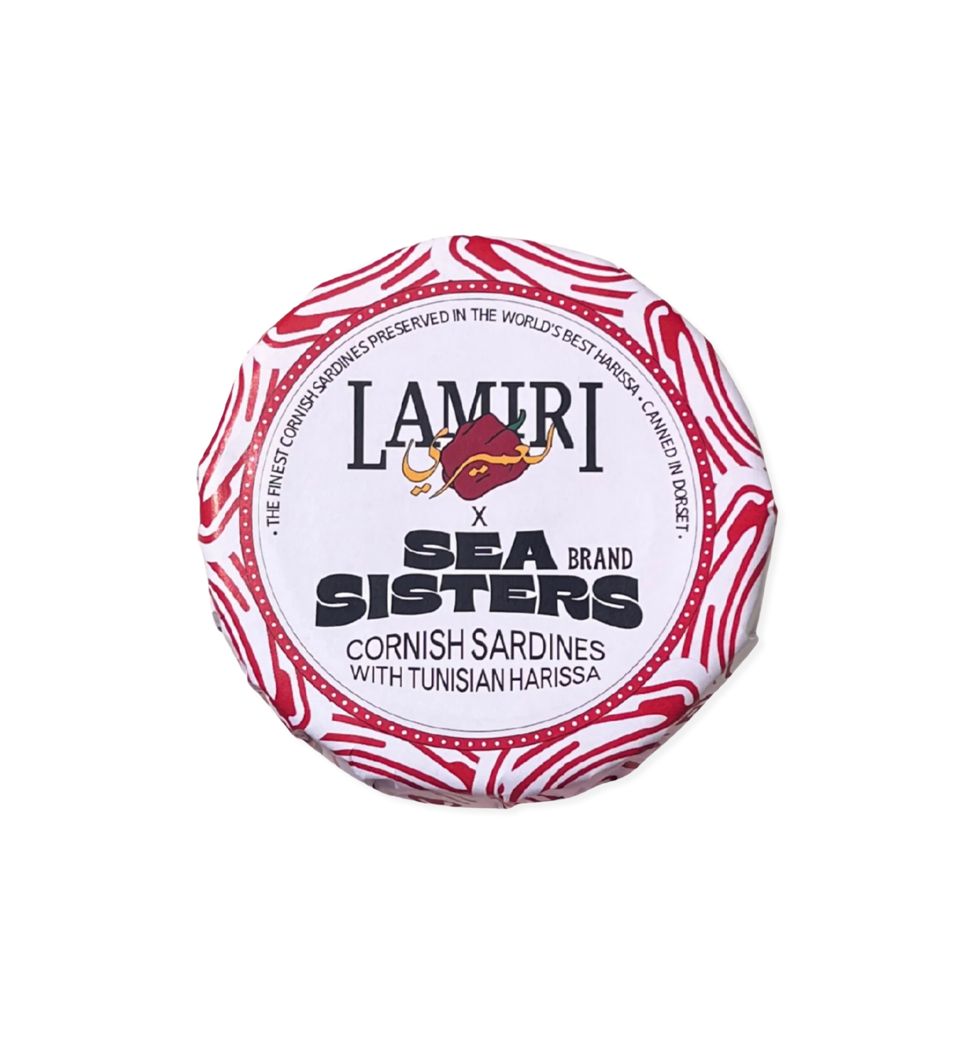 A collab between Sea Sisters and Lamiri Tunisian Harissa. Plump Cornish sardines packed by hand, swimming in Lamiri’s iconic harissa. Spicy, smoky, and deeply savoury. Eat straight from the tin, pile on toast, or make a sardine pasta you've never had before.