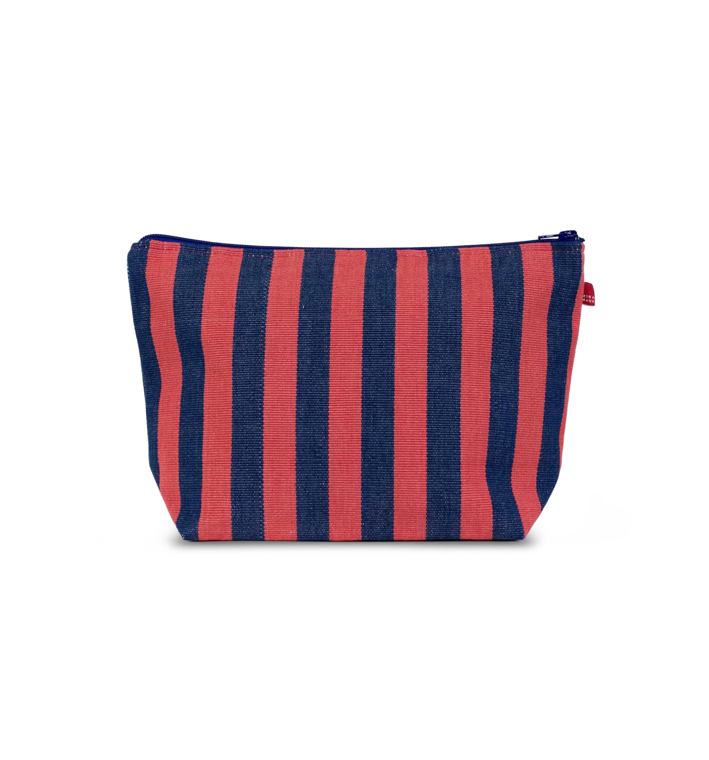 Enriqua Striped Large Cotton Toiletry Pouch, Blue & Red