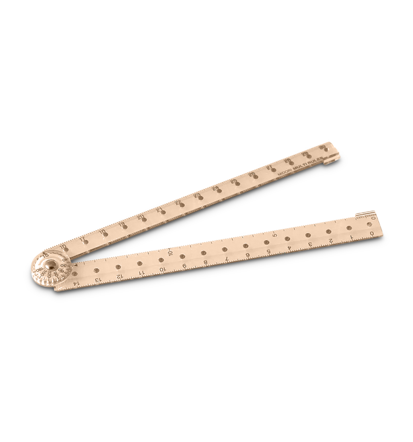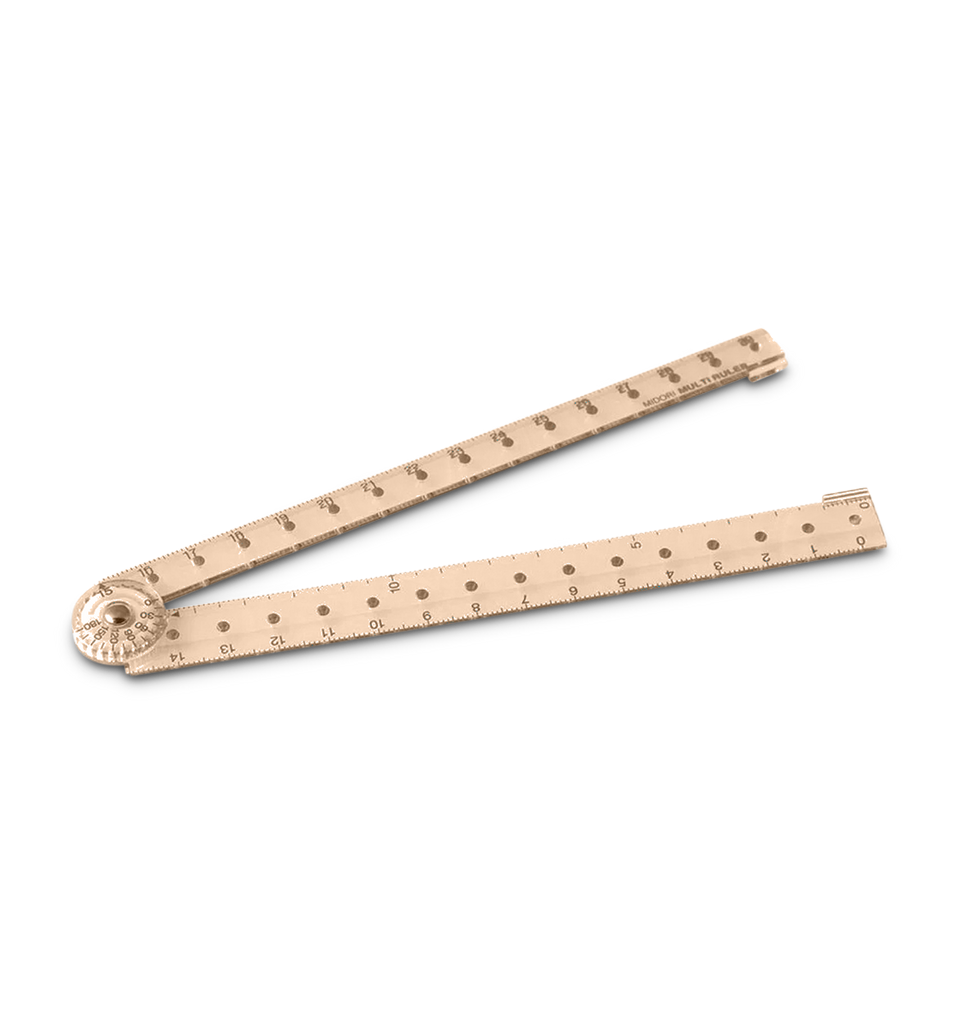 A lightweight 30cm ruler that folds to store at half its size. The folding mechanism also allows the ruler to be used as a projector with 15-degree increments.