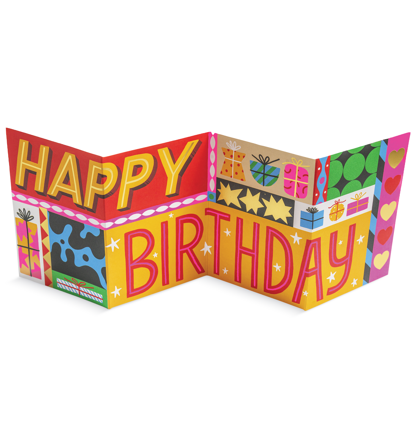 Happy Birthday Pattern Presents Fold Out Concertina Card