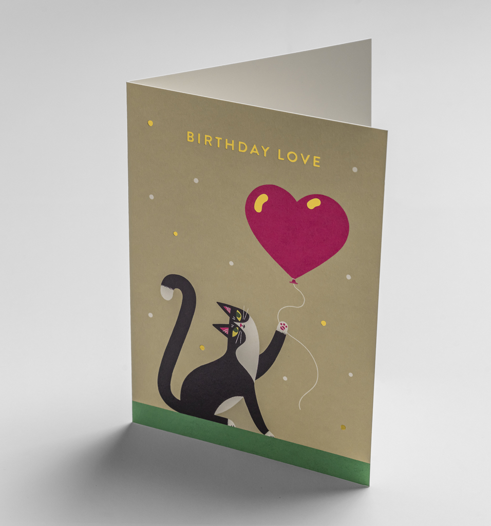Heart Balloon Cat Birthday Card