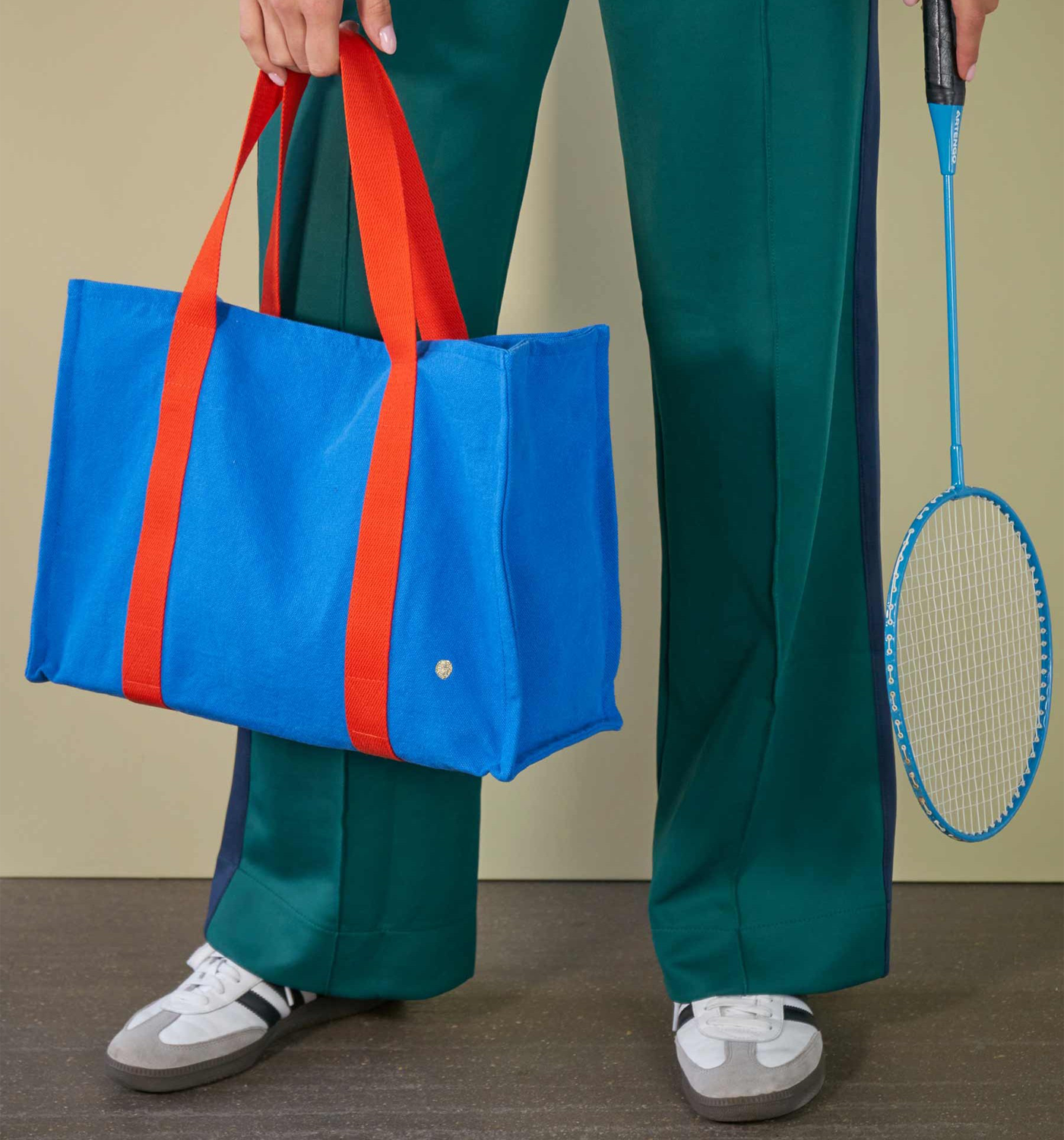 A compact tote for your daily needs. It has contrasting handles that are long enough to be carried over the shoulder, a rigid removable bottom, reinforcements on the sides and a magnetic clasp to keep your things safe. In short, it's the perfect hybrid between a casual tote and a more structured handbag!
