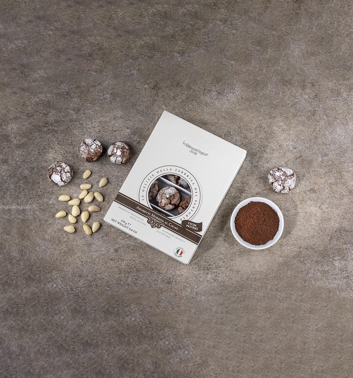 These deliciously soft and sweet pastries are the perfect after-dinner treat. Artisinally made in Tuscany, each individual amaretto is formed by hand before being gently browned in the oven and sprinkled with a dusting of icing sugar.