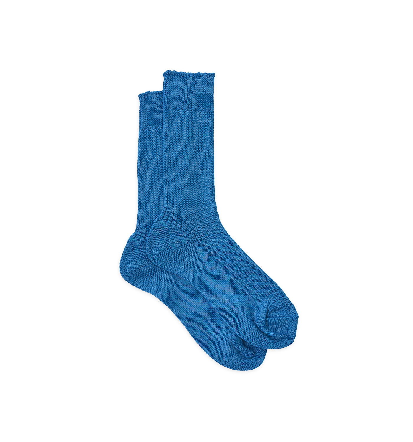 A pair of medium ribbed, crew length sock. The natural linen content will keep your feet dry and cool, wicking away moisture. The length will look very cute with clogs and sandals.