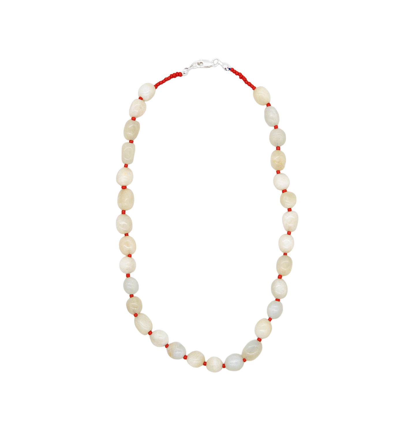 Moonstone & Red Seed Beaded Necklace