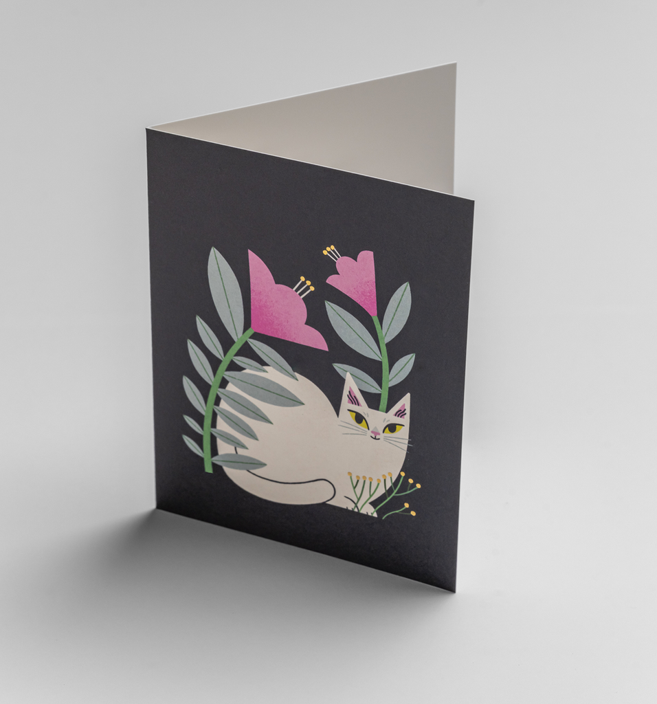 She uses bold, simplified shapes and vivid colours to draw her favourite things, including animals, plants, food, landscapes, travel, people, and everyday moments. Her whimsical illustrations are created digitally, using texture brushes to add a handmade touch.