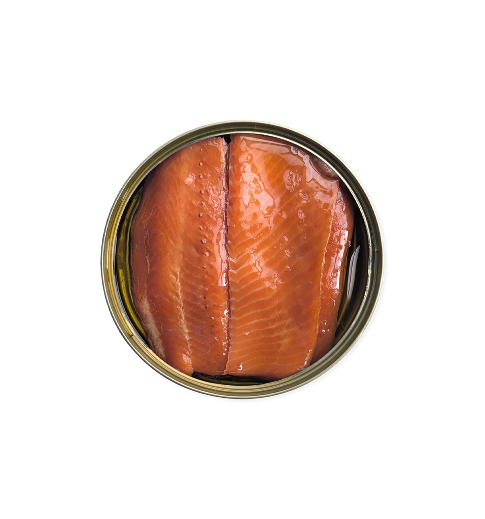 This delicious rainbow trout is gently smoked over oak and preserved in a warm, chilli-infused extra-virgin olive oil, resulting in a wonderfully versatile conserva. This superb fish is delicious with eggs for breakfast or with crackers, cream cheese & pickles.