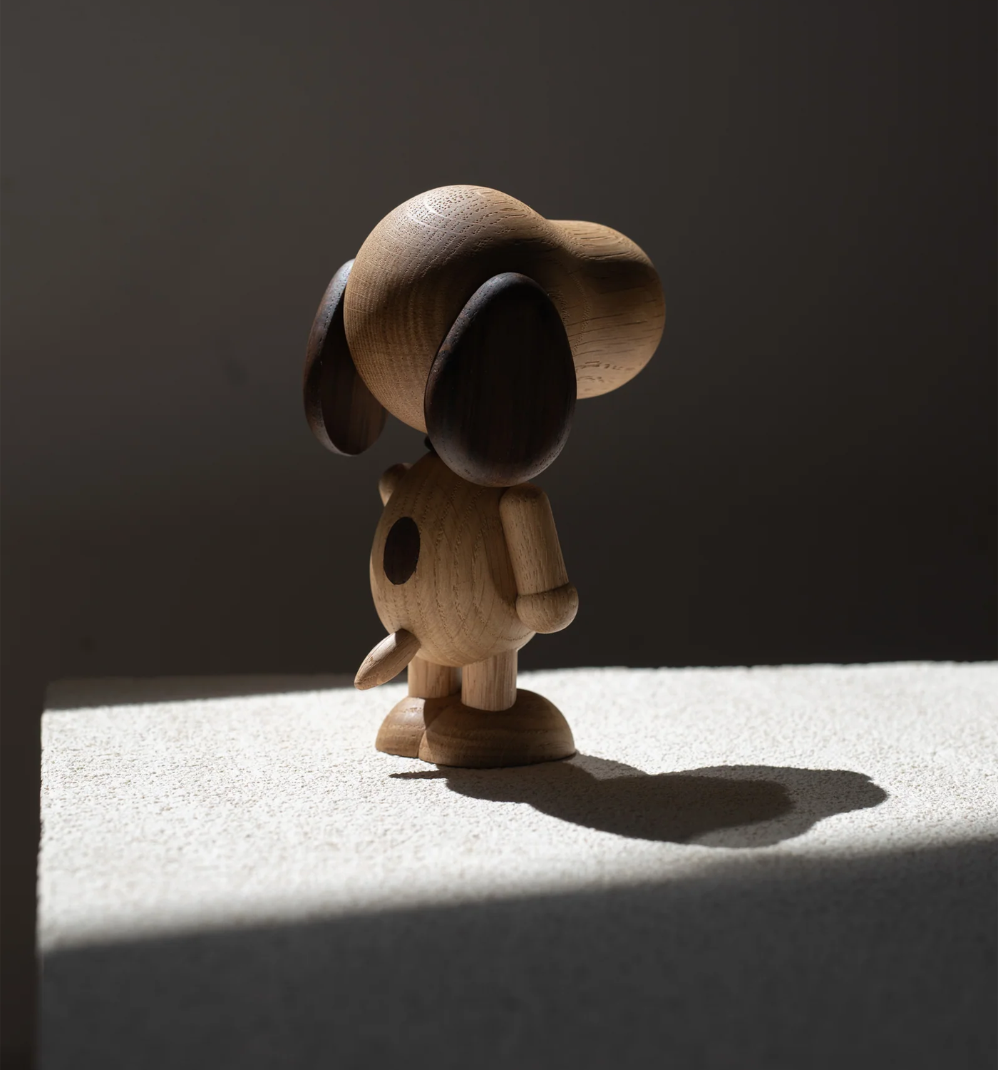 Inspired by the classic cartoon character, Snoopy's design has been stripped back and lovingly handcrafted from natural solid wood. Please note that due to the nature of the wood, there will be variations in the grain.