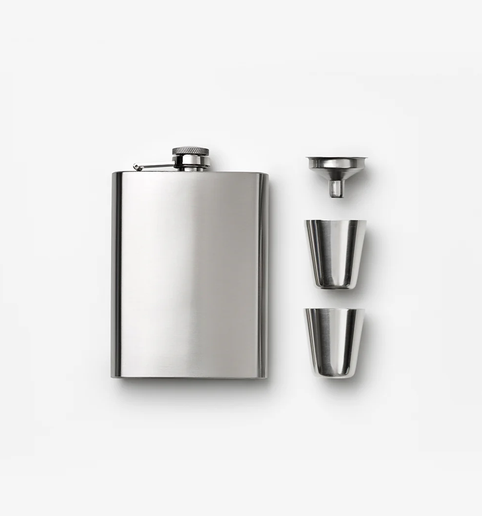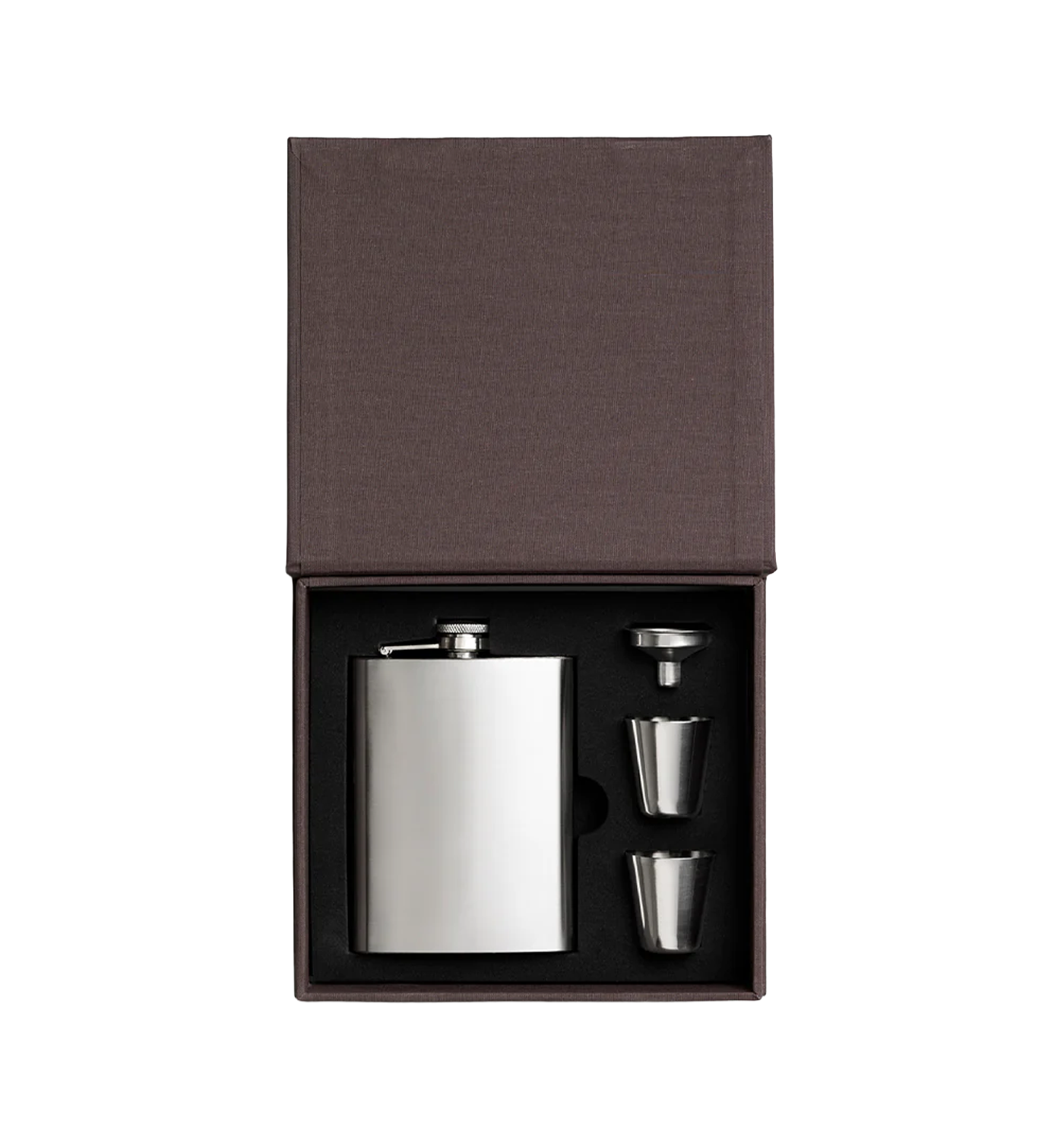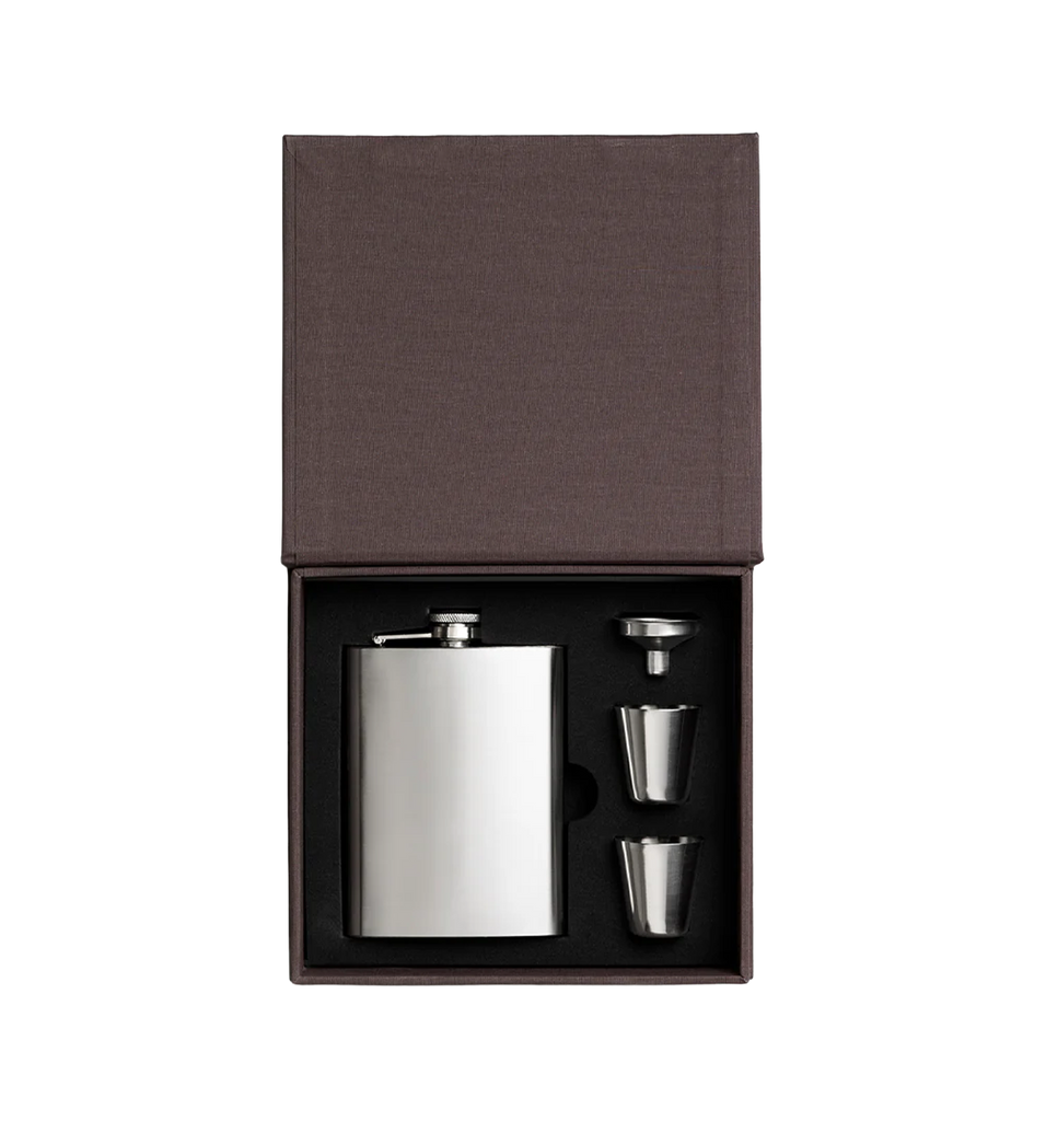Discover the Essential Hip Flask Kit, cleverly disguised as an elegant book-like box. The perfect fusion of aesthetics and functionality. Upon opening it, you will discover all the essential tools for enjoying your favourite spirits on social occasions.