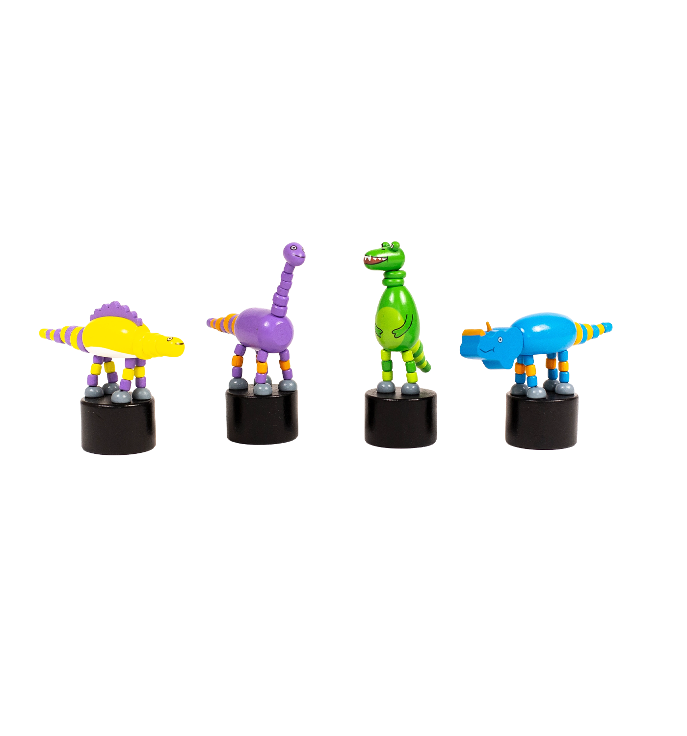 A classic wooden toy, updated by Jack Rabbit Creations. Push the bottom button and watch them collapse. Then, let go, and they pop back up, ready for more action!