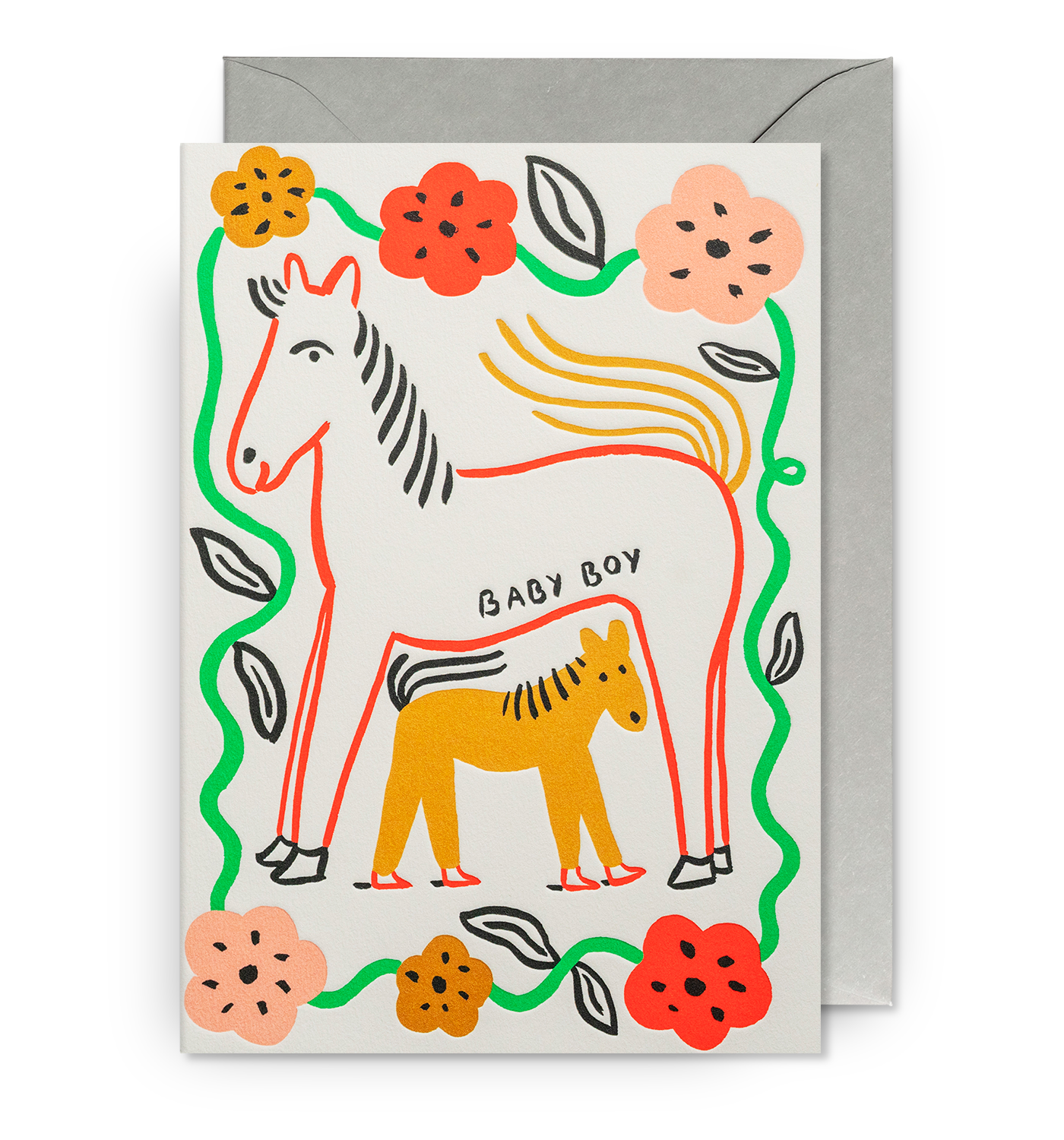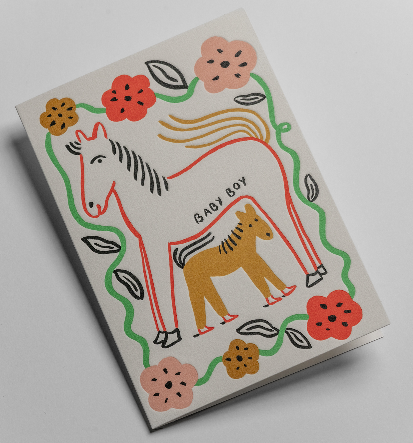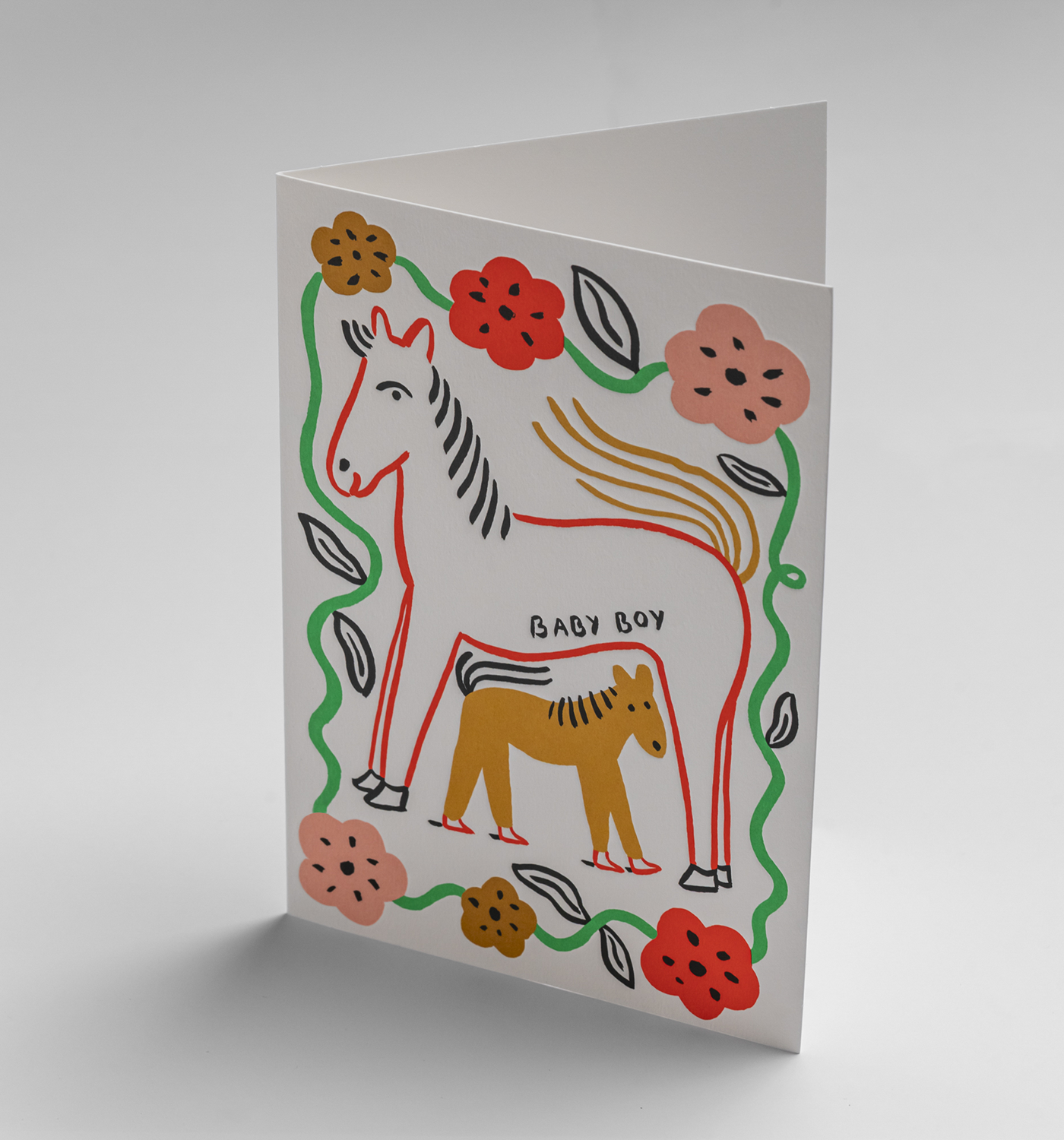 Baby Boy Illustrated Horses Greeting Card