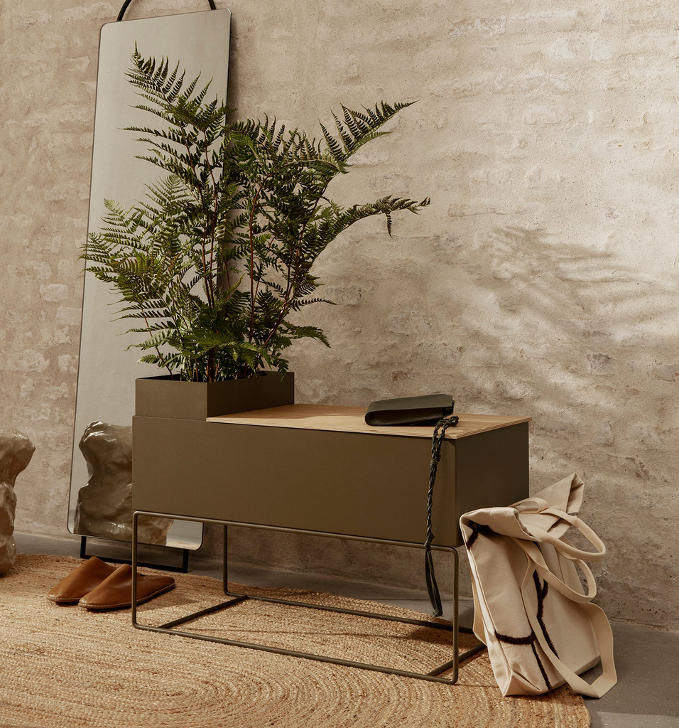 Large, low and deep, this Plant Box container in powder-coated metal is equally suited to housing plants as it is storing everyday clutter – from magazines and books to toys and office supplies. Set on a slender yet sturdy frame, the timeless design can also be used with the corresponding lid to create a seat in a hallway or extra surface space.