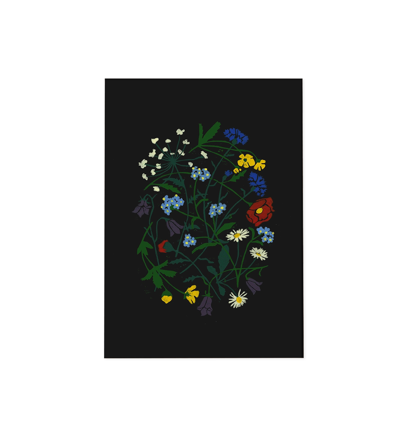 Martas Summer, created by the German artist Marta Fromme, features a black background adorned with flowers in various colours. The original artwork is a masterful woodcut print. This poster effortlessly brings life and energy to any room.