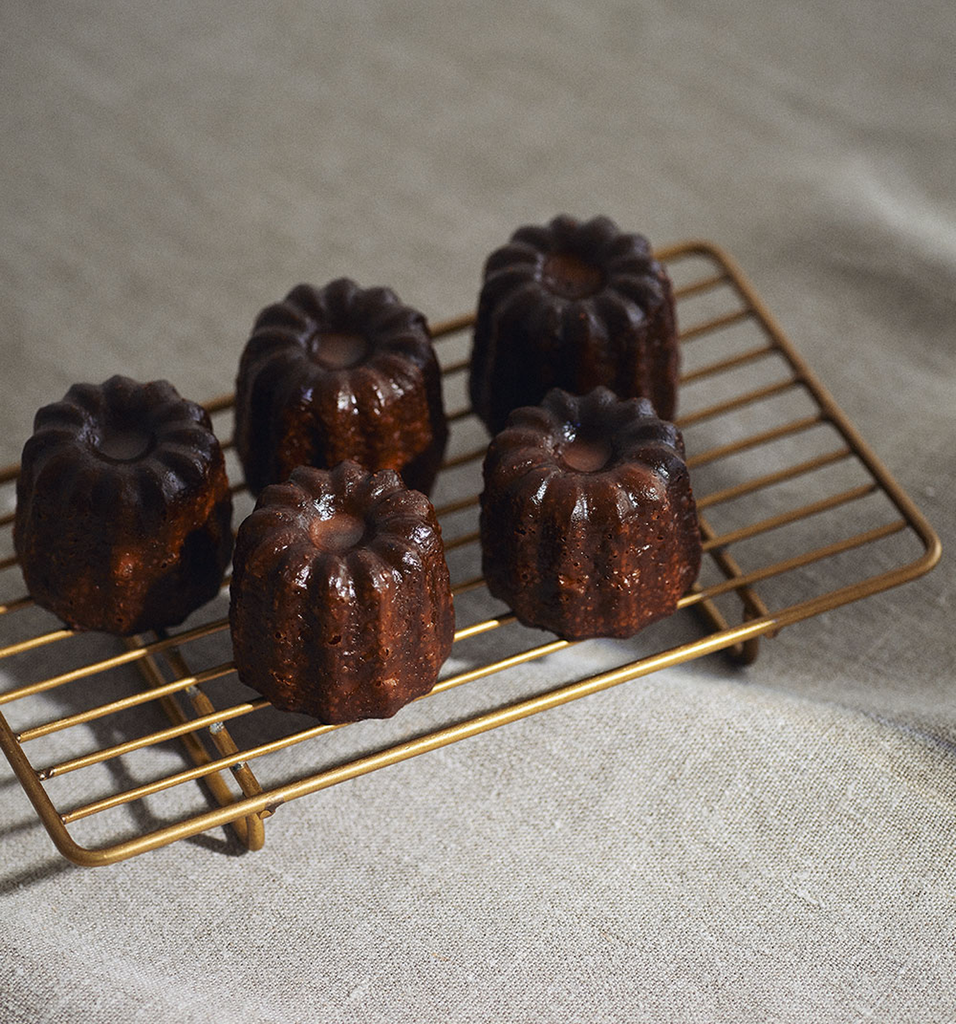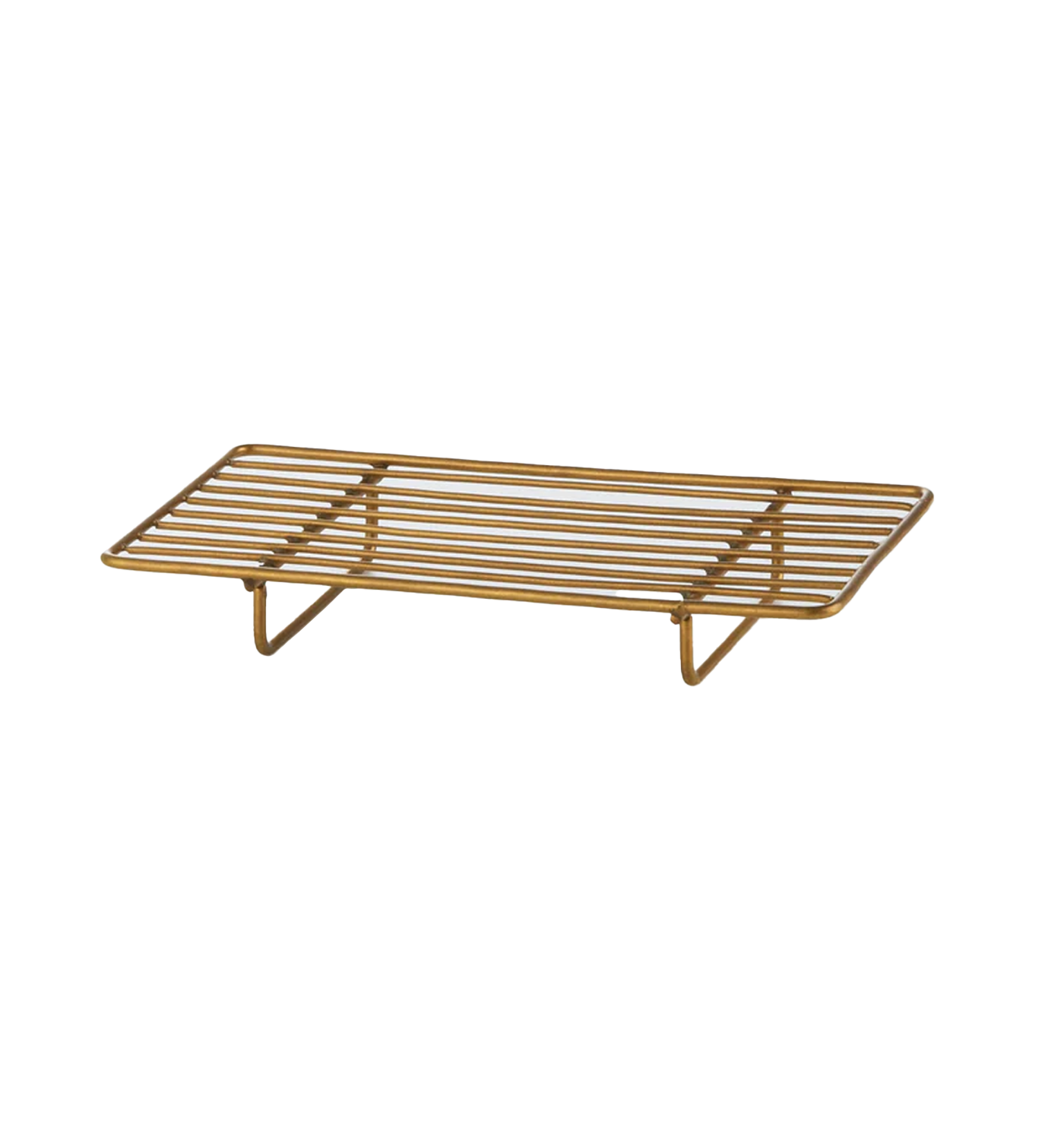 Brass rack, perfect for small batch baking or as a trivet on your counter or table. This round rack is great for cooling mini cakes or smaller baking dishes. As each is hand-made, surfaces may not be uniform. Will patina with use.