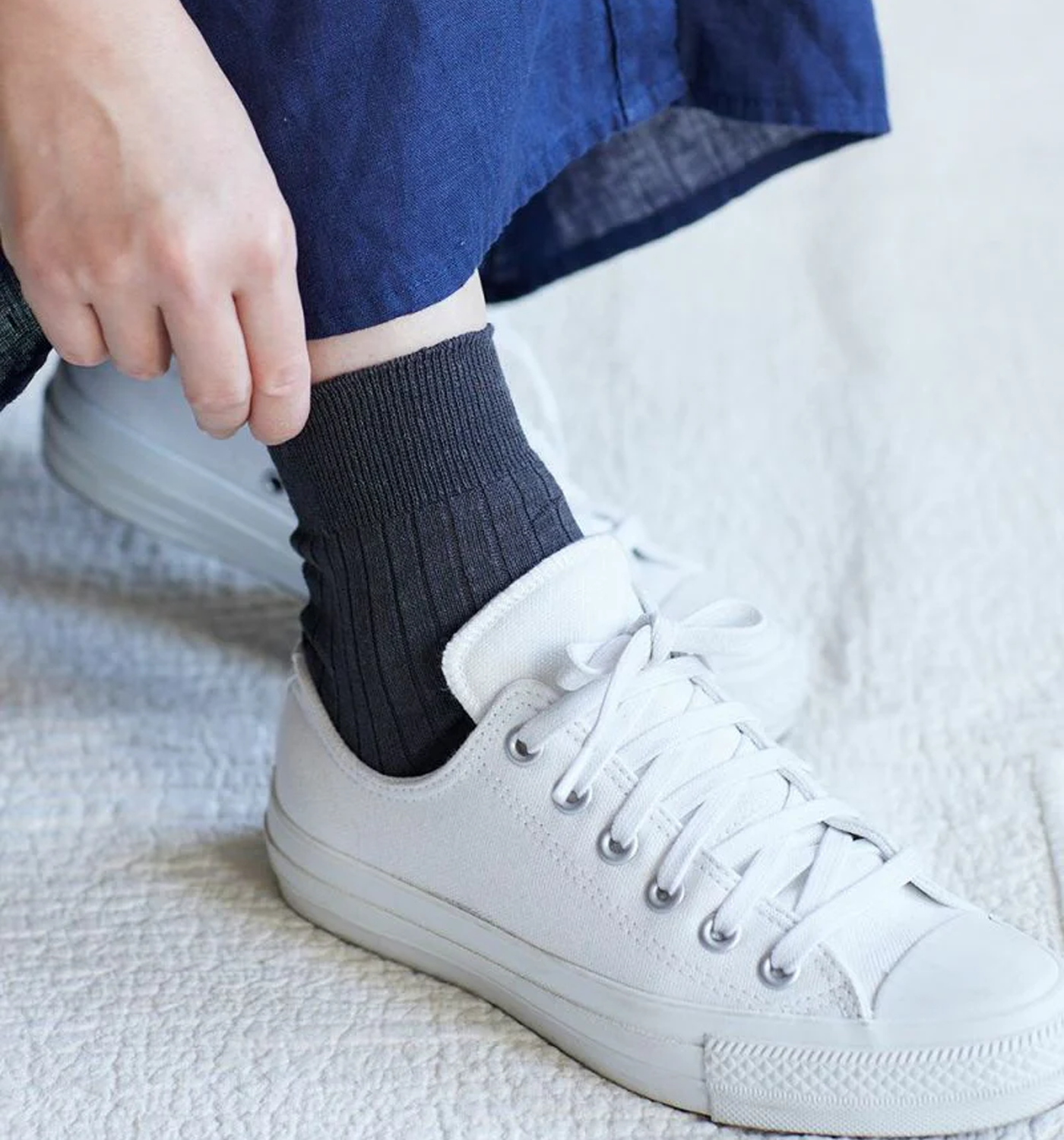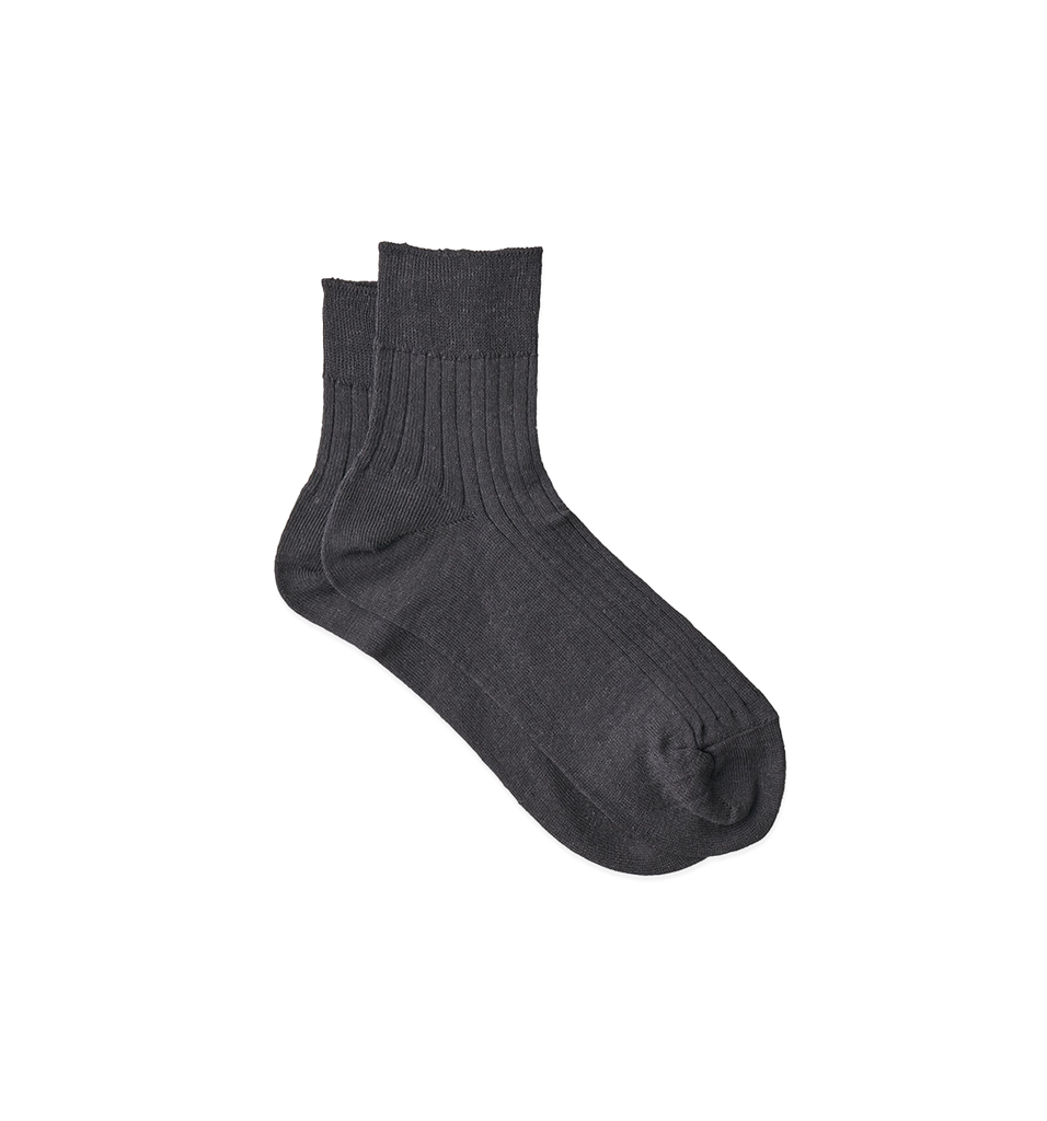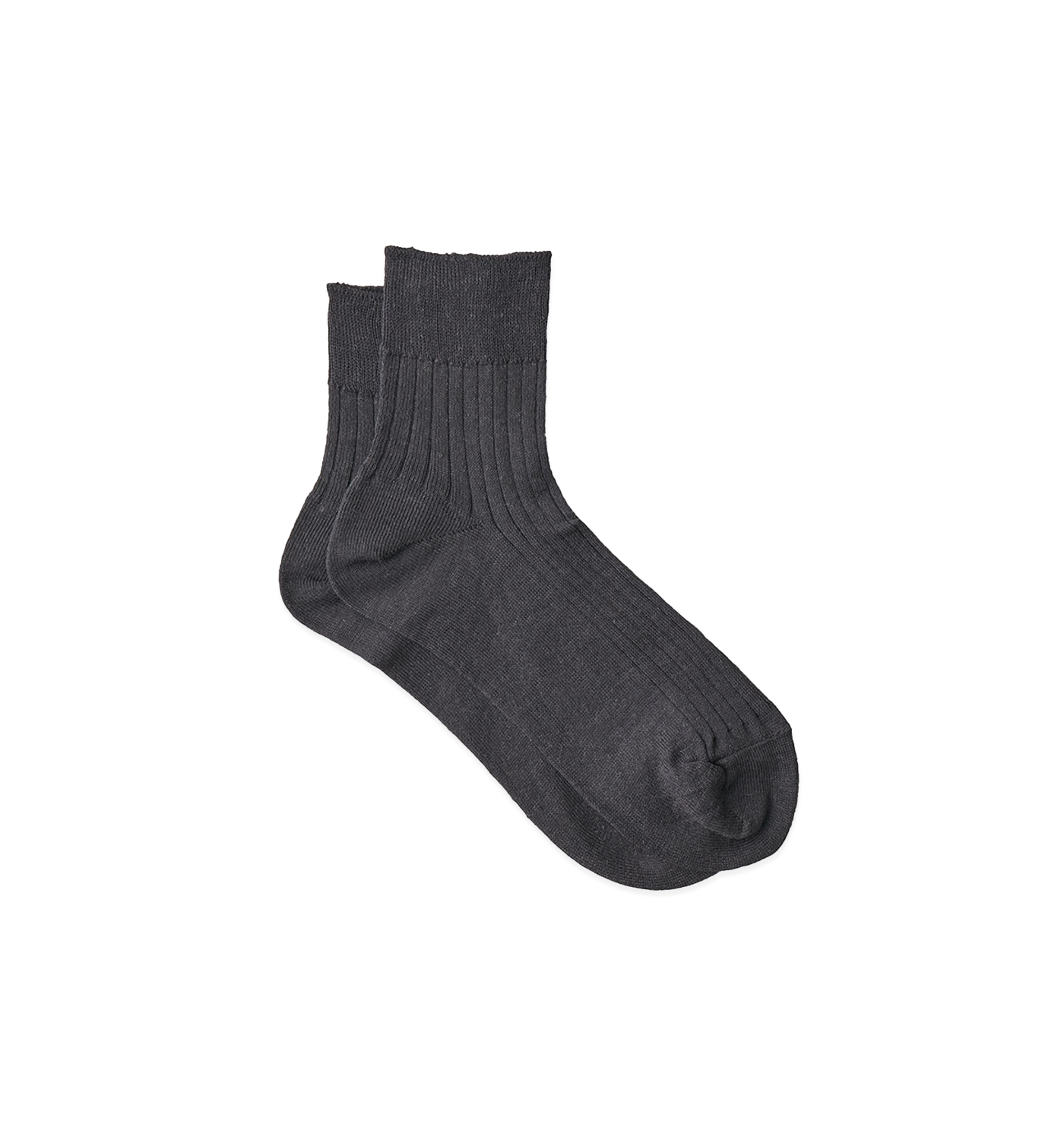 Fine Knit Linen Ribbed Ankle Socks, Charcoal
