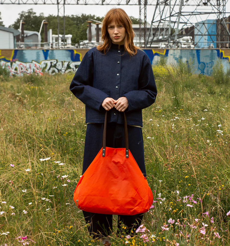 A spacious, lightweight, but strong tote featuring sturdy vegetable-tanned bridle handles. The bag is cut and sewn in Suffolk and then sent to the Kate Sheridan studio in Clapton for finishing. They hand edge paint the straps and attach them in-house.