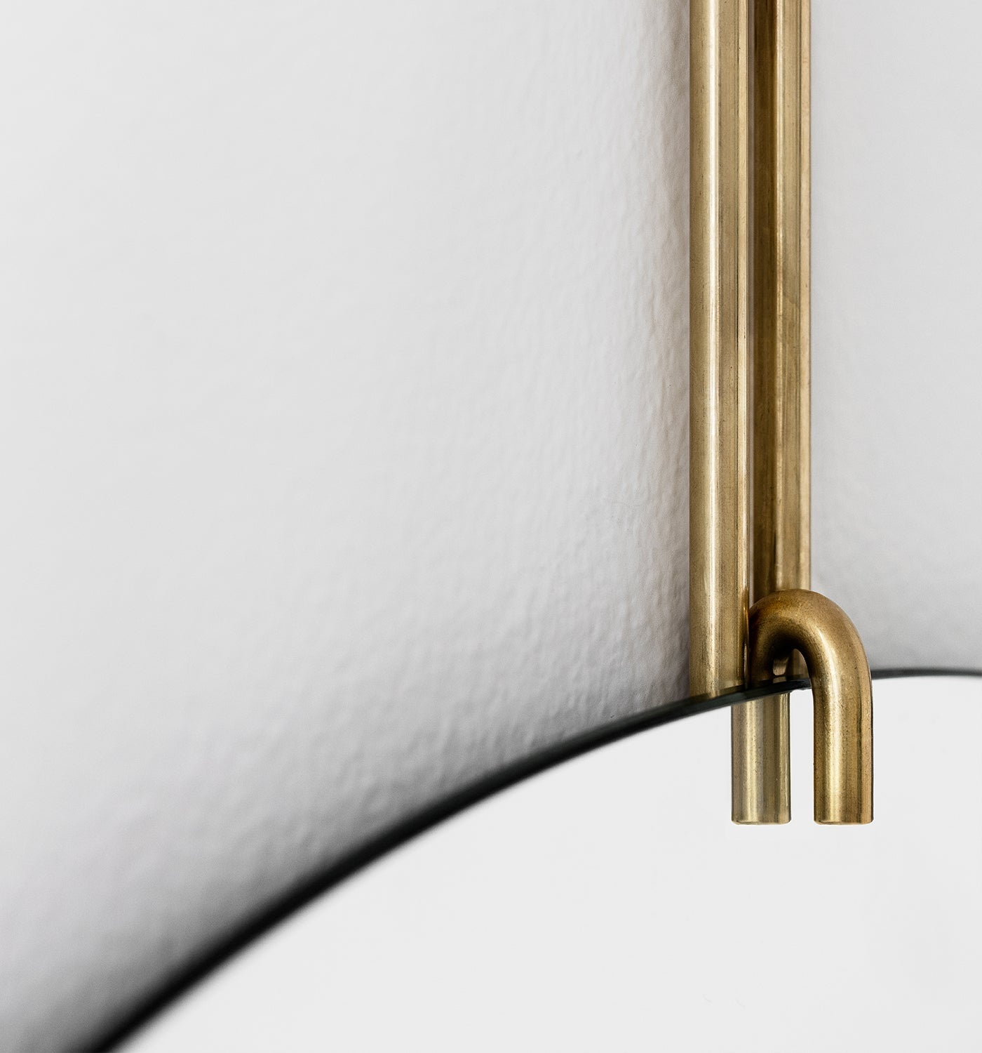 Wall Mirror is formed from a single piece of mirror glass held by a lightweight metal wire form. The contrasting properties of the two components - solid and permeable, light and heavy - are what give the design its character.