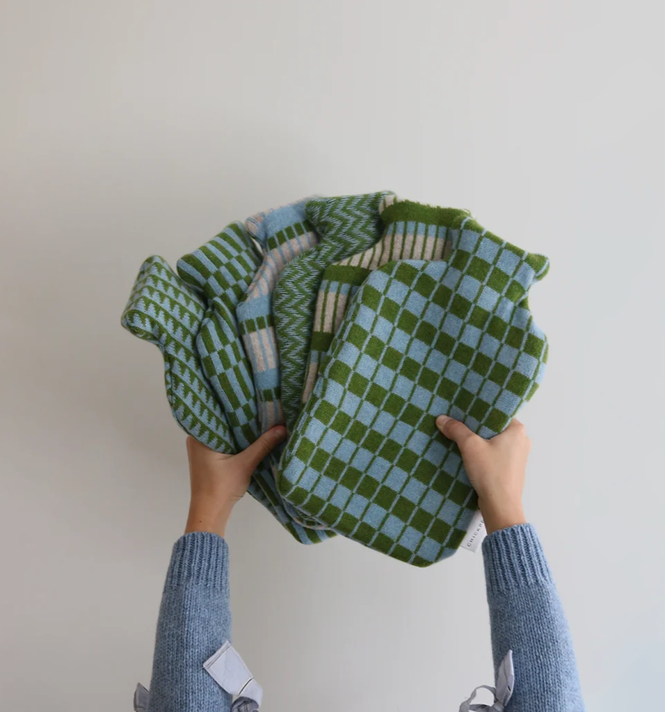 Handmade in Hampshire using luxuriously soft lambswool yarn, these wonderfully cosy, knitted hot water bottle covers will keep you warm for hours as well as being a stylish accessory for your living space.