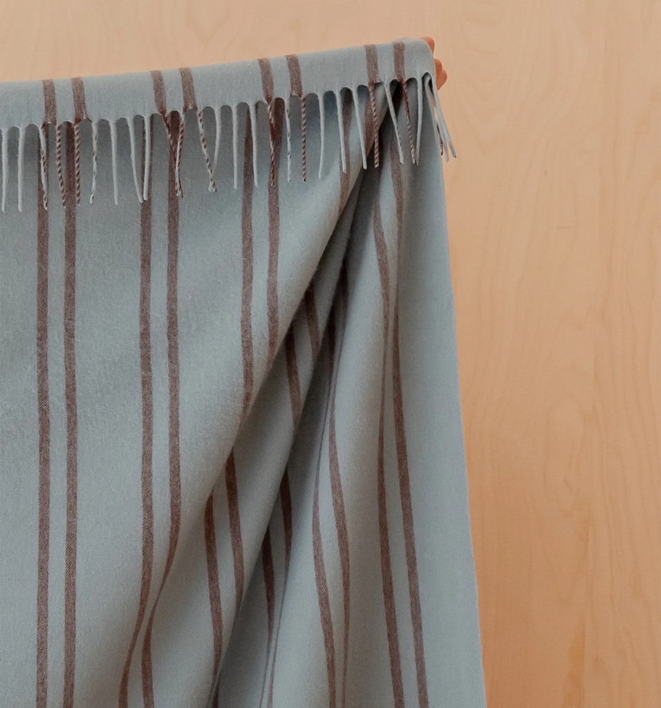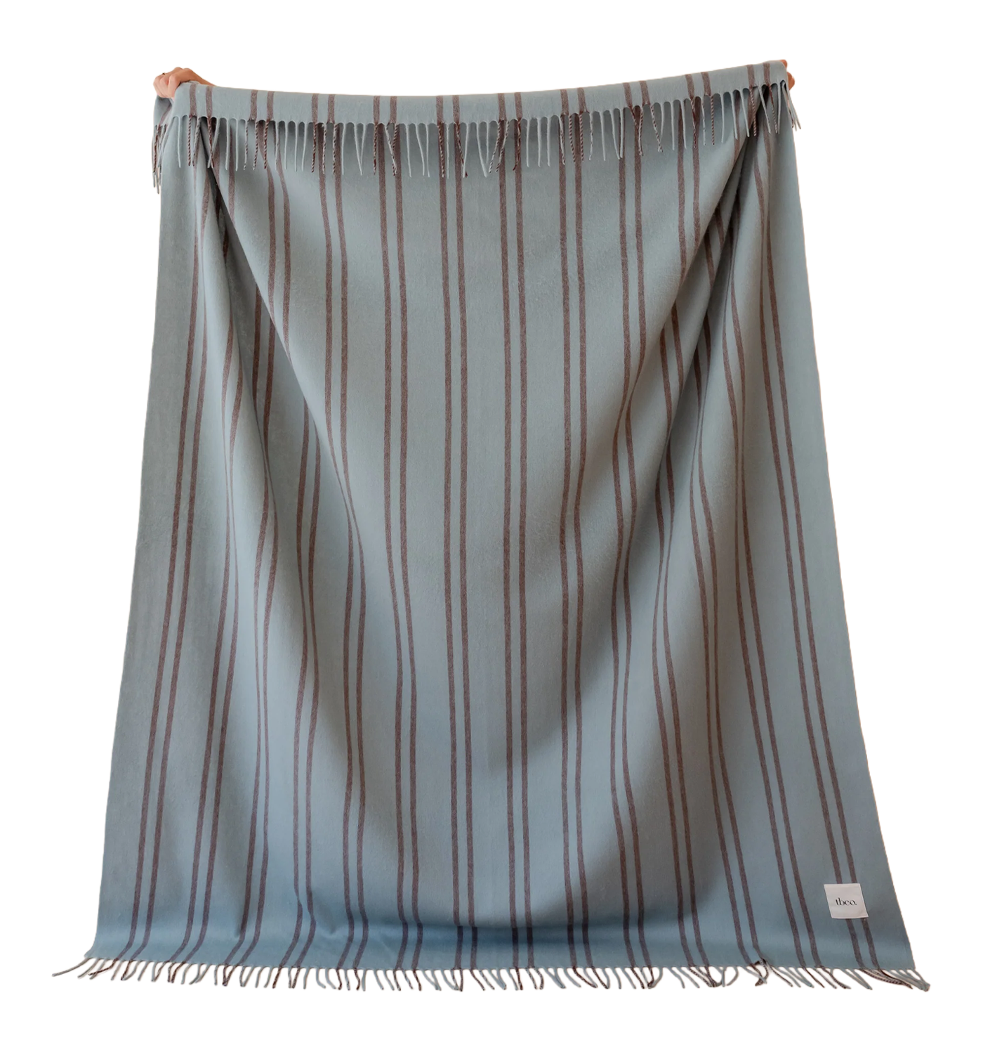 Wrap yourself in the luxurious comfort of this fringed TBCo lambswool blanket in a mint blue shade with a brown pin stripe. It features super-soft, high-quality wool that provides exceptional warmth, breathability, and insulation for a more restful sleep. Unlike synthetic blankets, lambswool offers superior natural benefits, ensuring lasting comfort and durability.