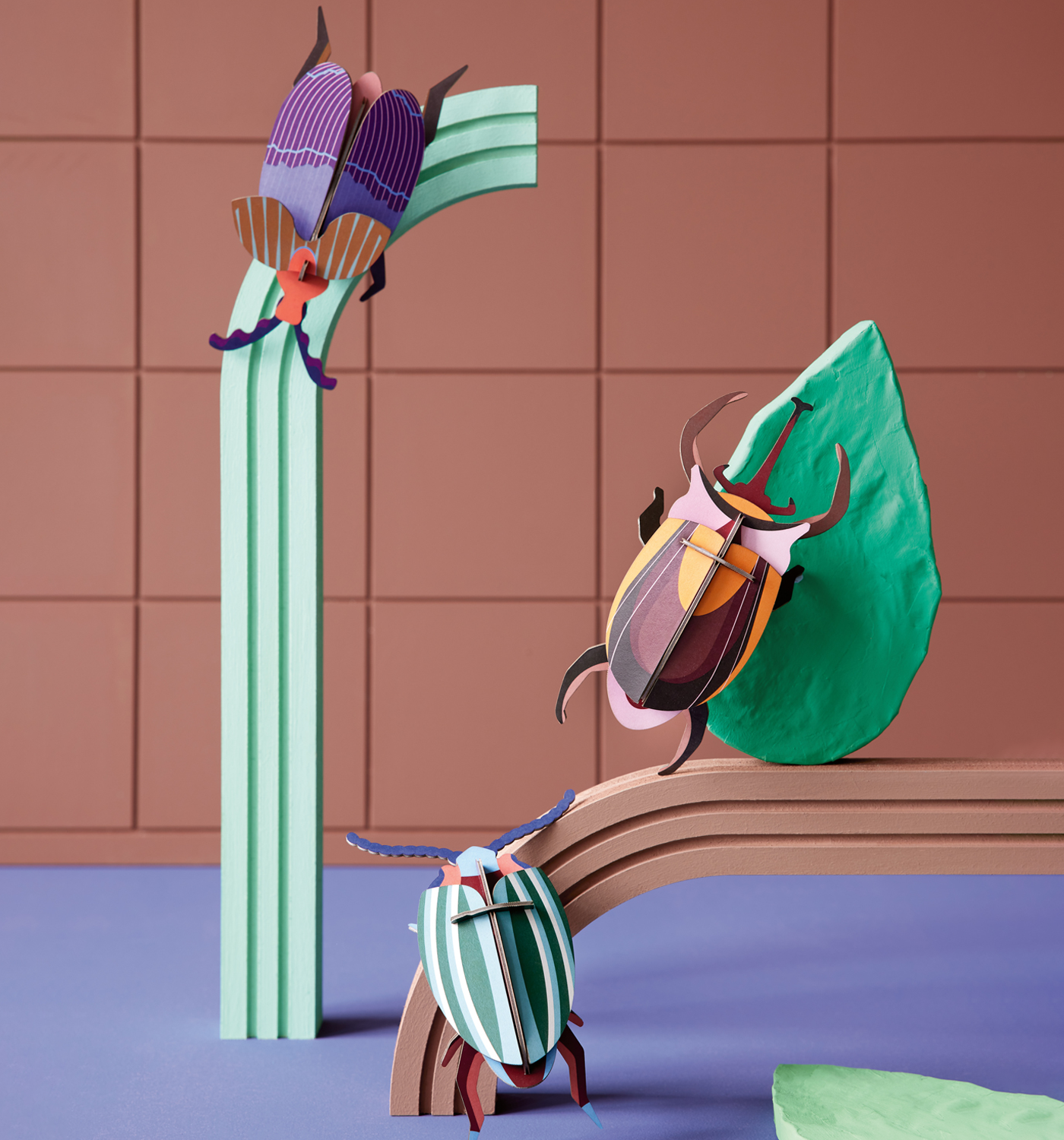 Printed on recycled cardboard using vegetable ink, these colourful creatures, with their bright graphic patterns, allow you to add a little beauty to both your home and the world.