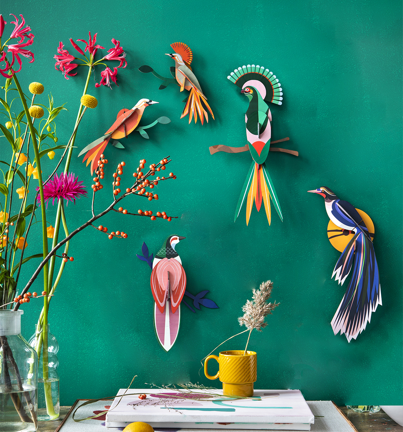 These birds of paradise out of recycled cardboard are special treasures for your home: always colourful and alluring with their striking graphic patterns.