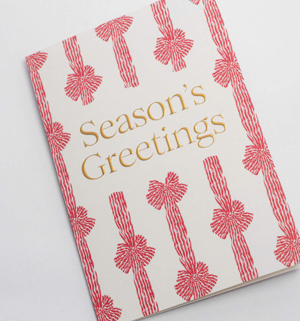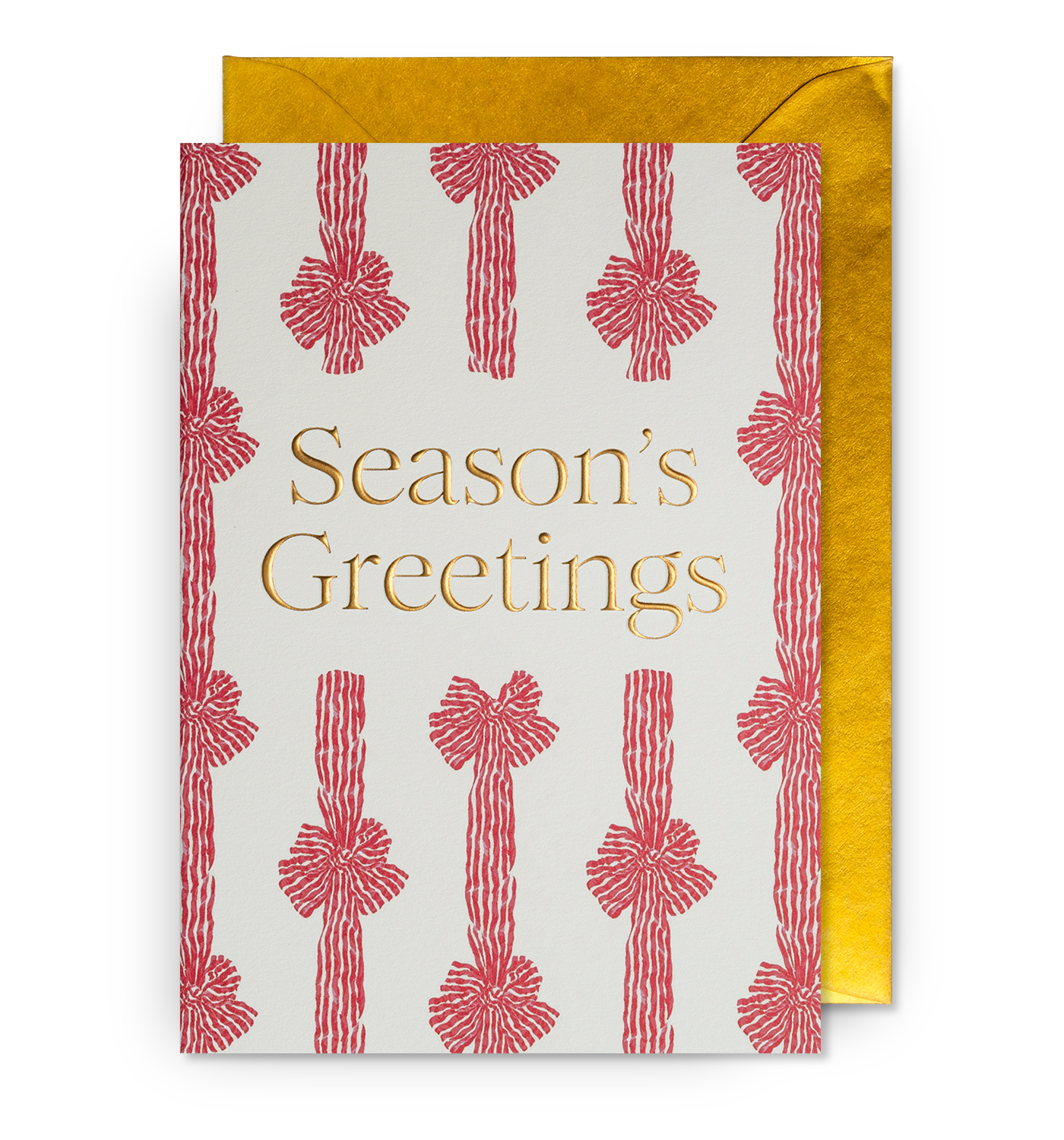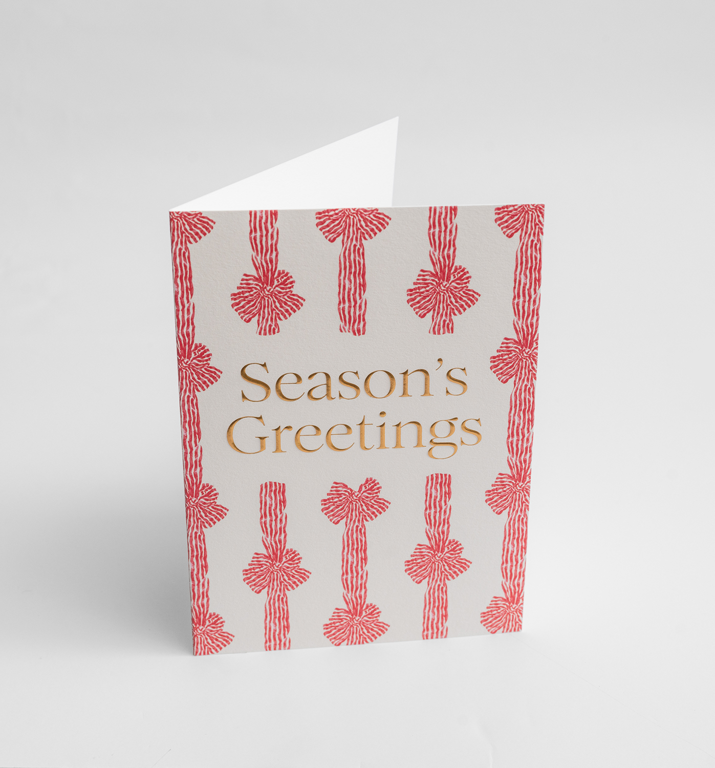 Season’s Greetings Knotted Sash Carmine Christmas Card