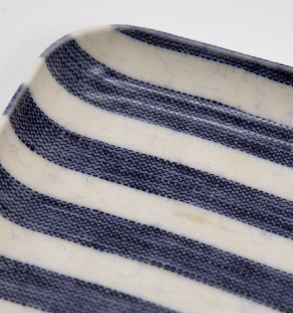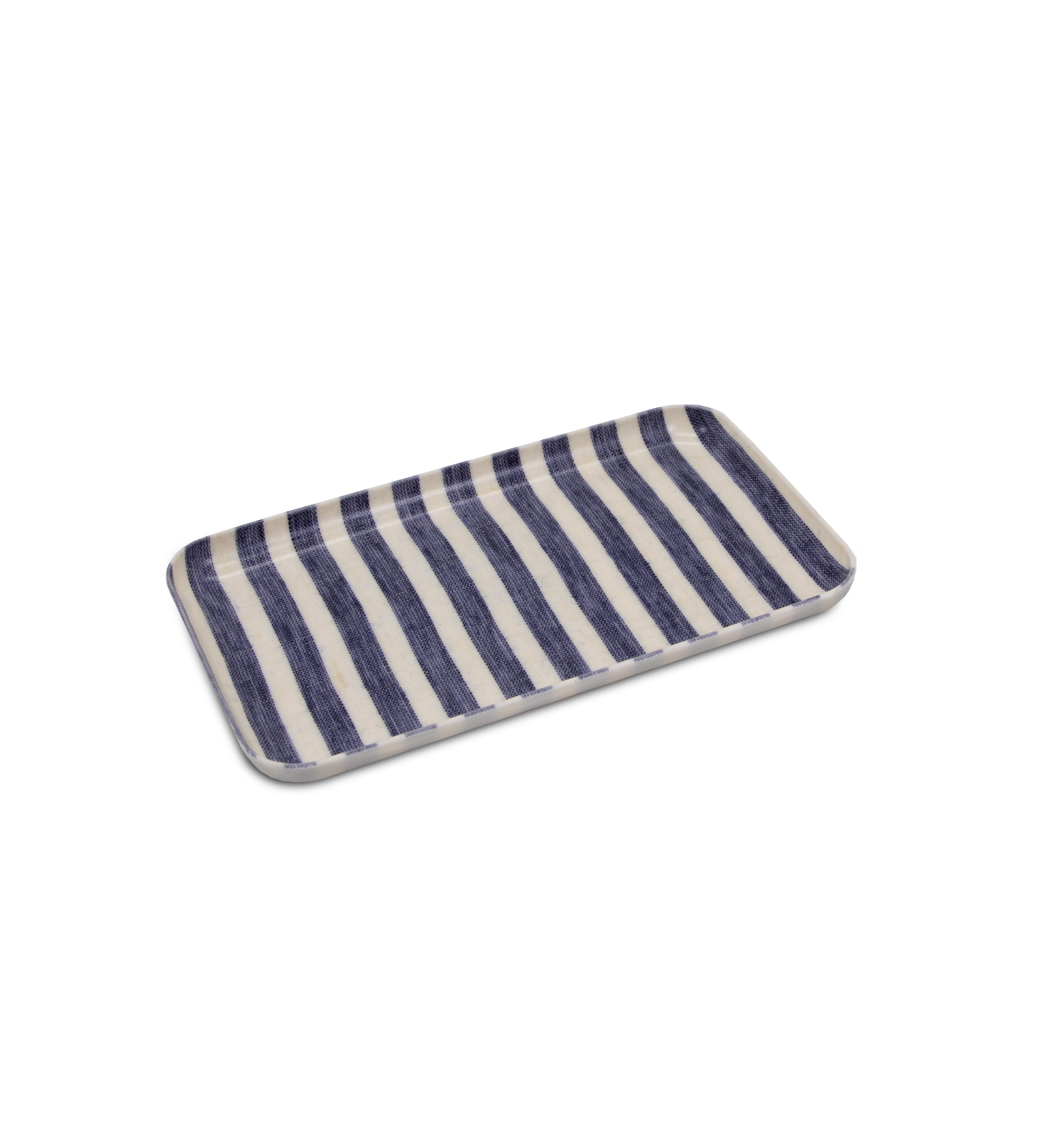 A wonderfully crafted tray made from linen coated in polyresin. It's lightweight, resistant to water, and can be wiped clean even if it gets dirty. Great for utility and decoration alike.