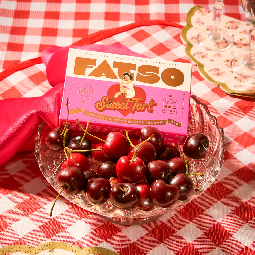 A love affair of dark chocolate, sweetly seduced by cherries and almonds, lovingly caressed by buttery shortbread. It's enough to make you blush. But hey, the heart wants what it wants! Ethically sourced, 60% dark cocoa with Fino de Aroma credentials it doesn’t get much better than this!