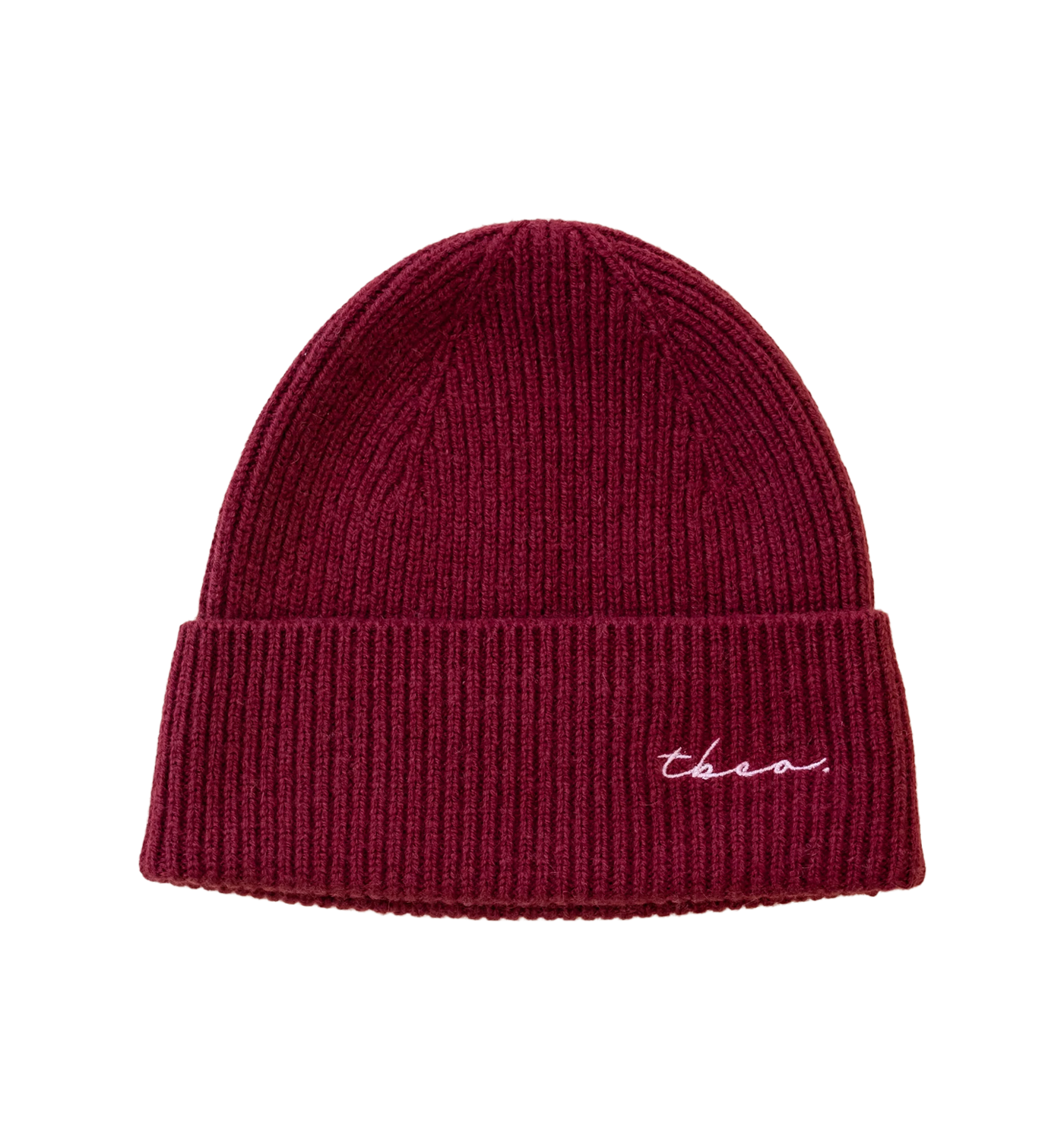 This chunky ribbed knit Beanie is the perfect accessory for when there's a chill in the air. Woven from a super soft blend of cashmere and insulating merino wool, this burgundy design with pink embroidered TBCo logo balances warmth, texture and colour to elevate your outfit.