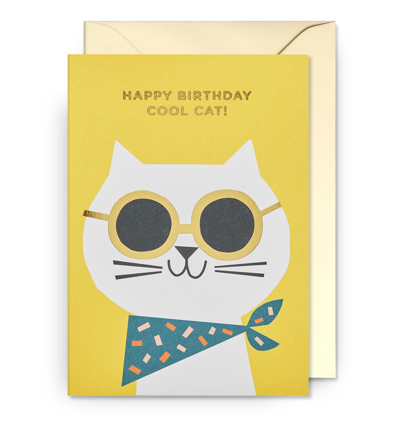 這隻貓的色調充滿童真、天真和異想天開,非常適合孩子的生日。用這張帶有金箔細節的賀卡送上您最美好的祝福。